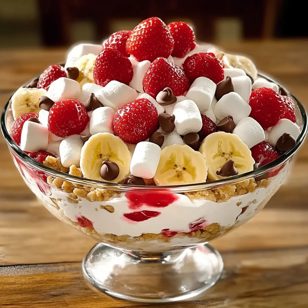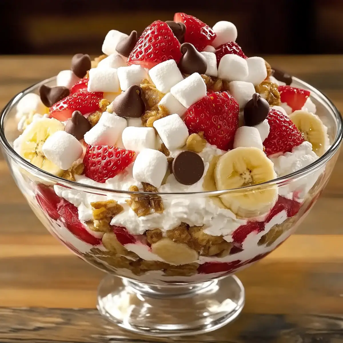 Chocolate Sauce Drizzle: A rich, warm topping accentuates the chocolate chips in the fluff, intensifying the dessert experience. Drizzle over each serving for a chocolate lover’s dream!