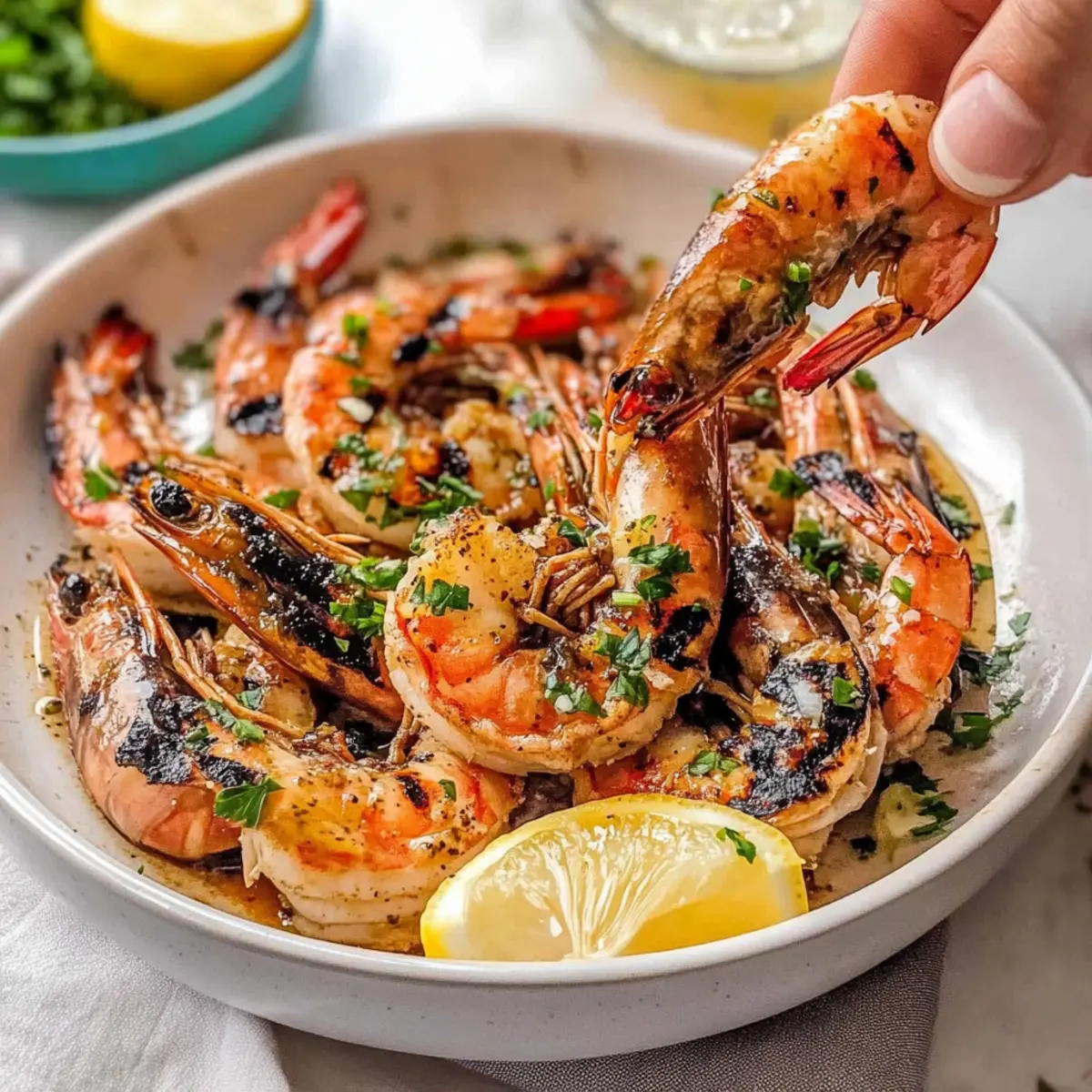 Zesty Dressing: Serve your BBQ Grilled Prawns with a side of chimichurri for a fresh and tangy dressing that perfectly contrasts the richness of the prawns.