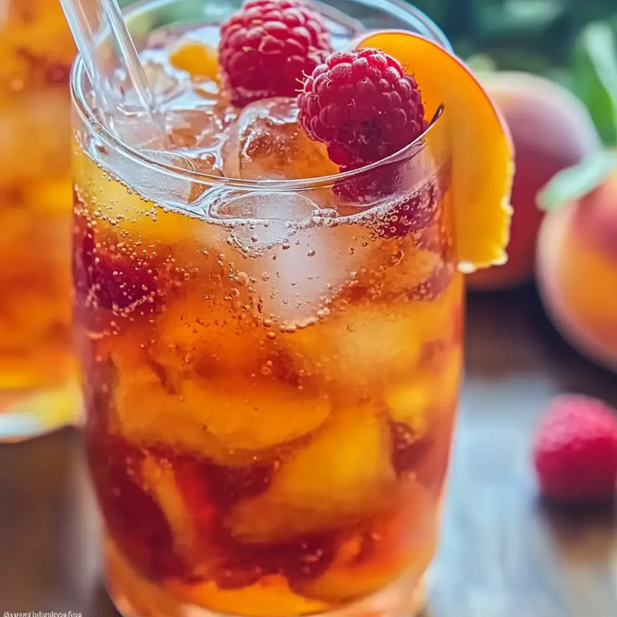 Refreshing, bubbly goodness: This Bellini Peach Raspberry Iced Tea captures the essence of summer in every sip, perfect for a sun-soaked day.
