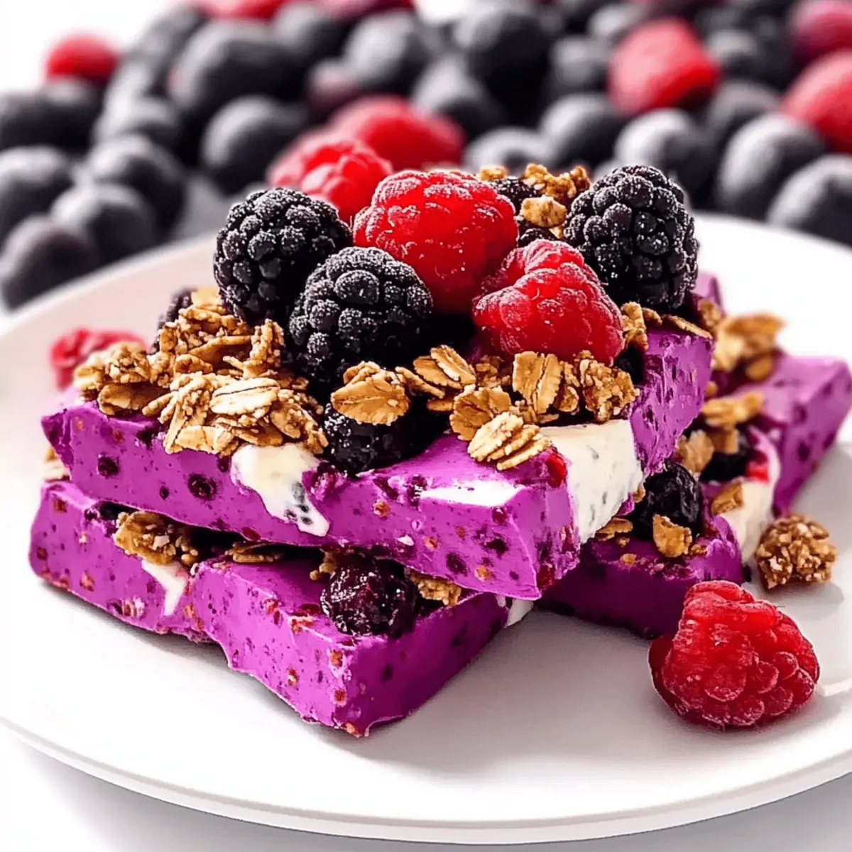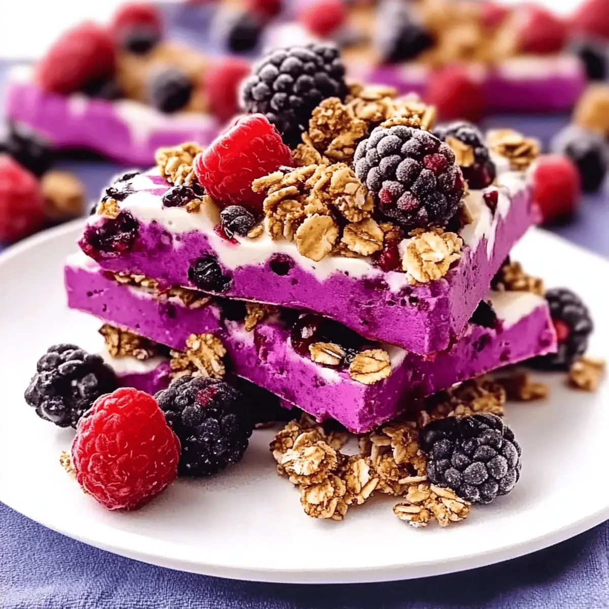 On a sunny afternoon, I found myself rummaging through the fridge for a cool, refreshing snack, something to beat the heat while satisfying my sweet tooth. That’s when I stumbled upon the idea for this vibrant Berry Granola Yogurt Bark. It’s a delightful combination of creamy yogurt, plump mixed berries, and a satisfying crunch from granola, all coming together in a healthy, no-bake treat. This gluten-free snack is not just a breeze to whip up—it takes only five minutes to prepare! Perfect for busy days and kid-approved, it’s a way to curb cravings without the guilt or hassle of baking. Curious how this simple recipe can become your new go-to snack? Let’s dive in!