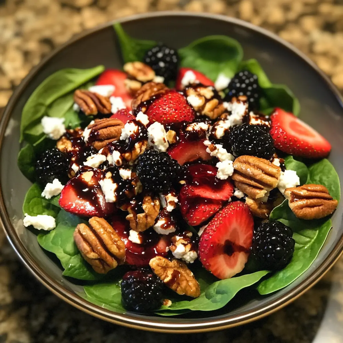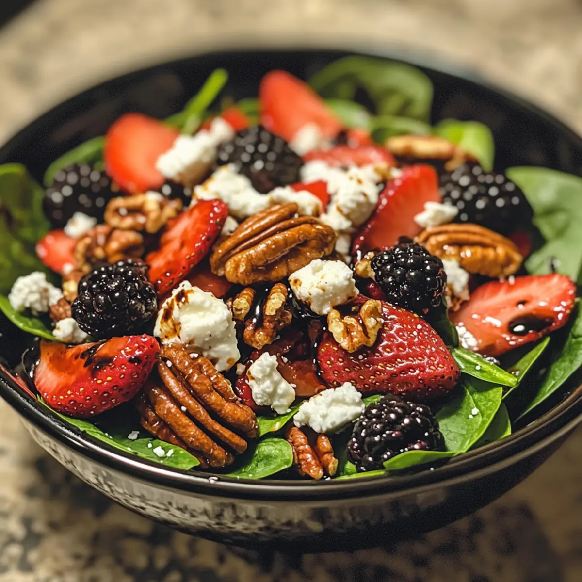 Berry Spinach Salad with Pecans, Feta, and Balsamic Bliss