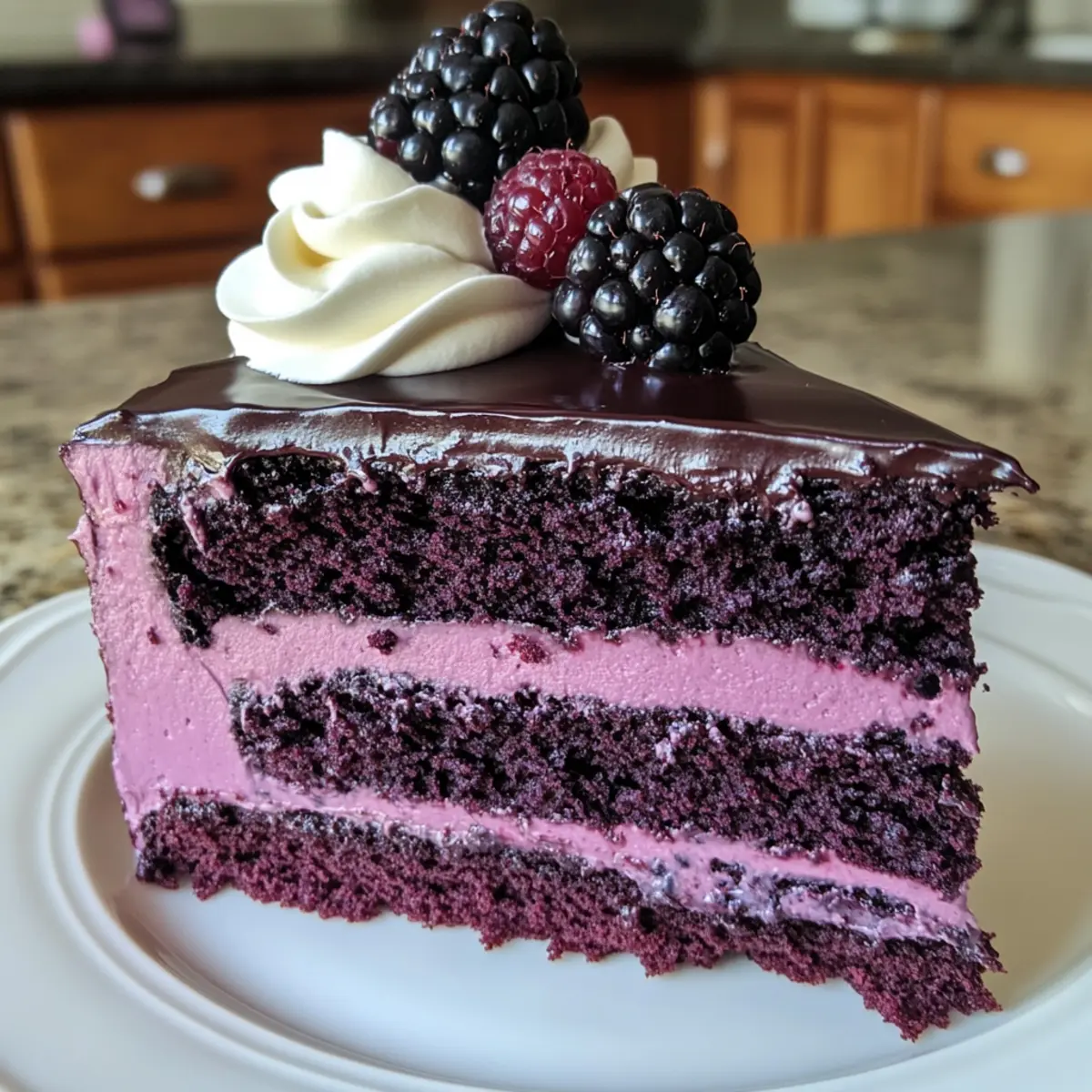 Indulgent, rich flavors: This cake blends decadent chocolate velvet with a tart blackberry filling, creating a symphony of taste that tantalizes the palate.