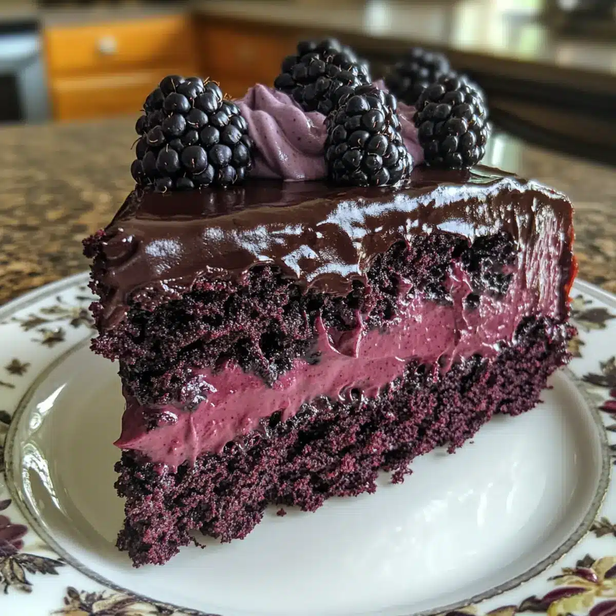 Chill the assembled Blackberry Velvet Gothic Cake for at least 1 hour before serving. This resting period allows flavors to meld beautifully and helps the cake set. Once chilled, you can add optional garnishes like fresh blackberries or chocolate shavings for an extra touch of elegance before slicing.