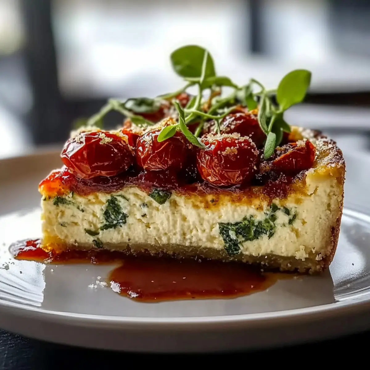 Savory Cheesecake with Roasted Tomato Jam & Parmesan Crust