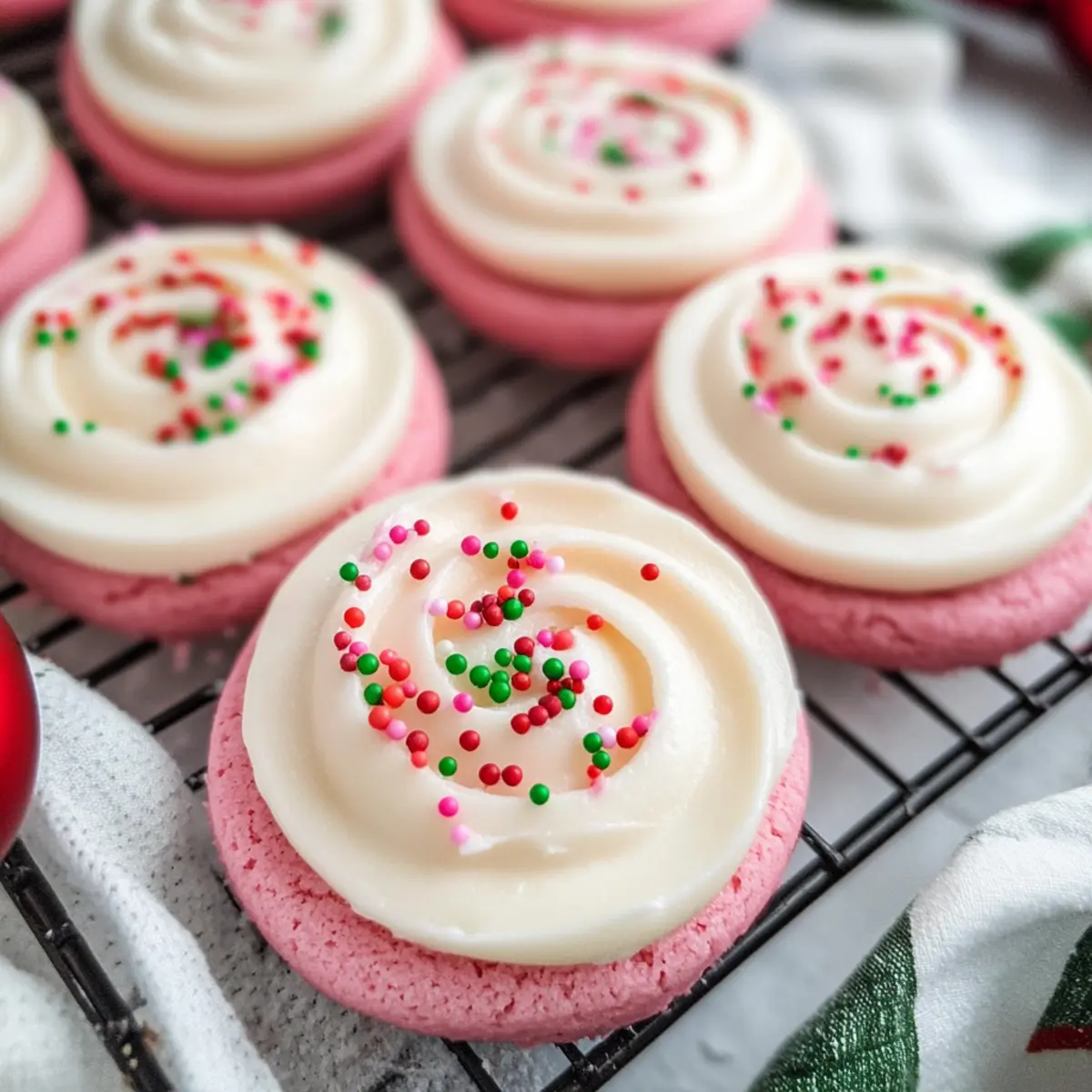 Irresistible Christmas Pink Velvet Cookies with Creamy Frosting