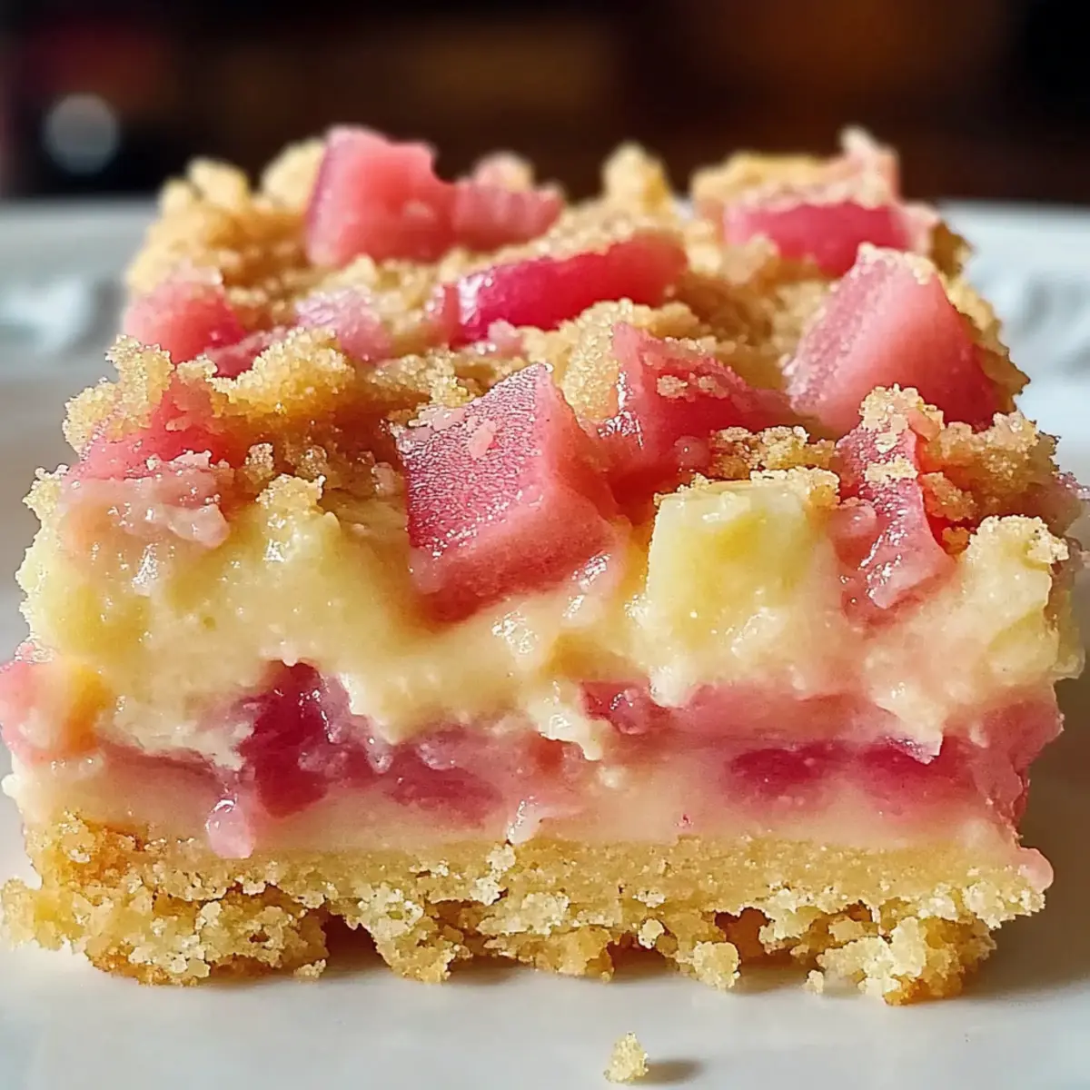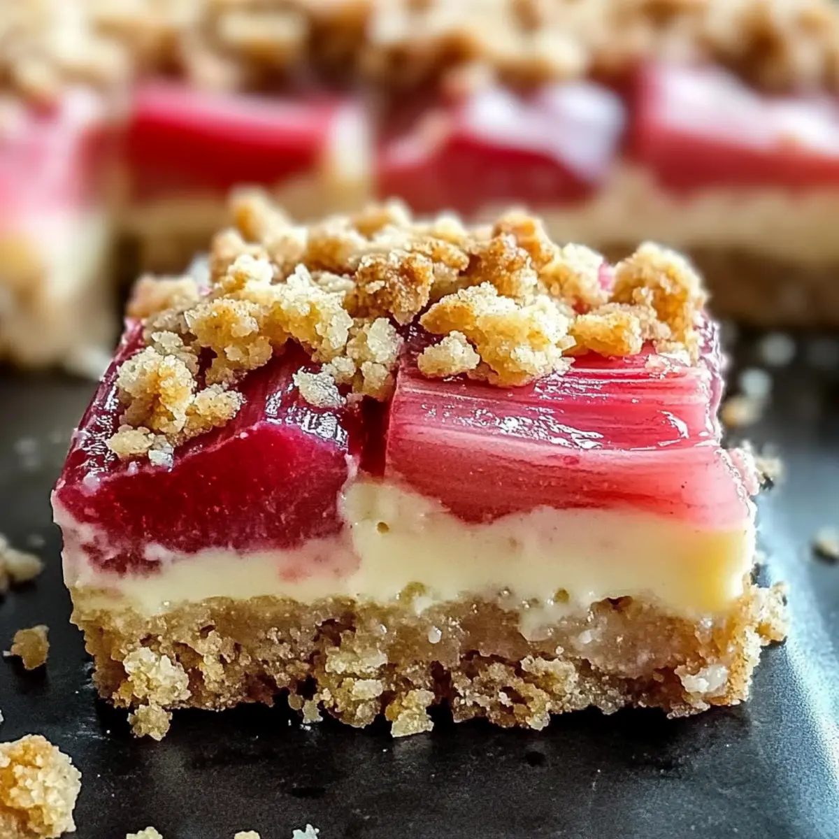 Delicious Creamy Rhubarb Cheesecake Crumble Bars to Savor