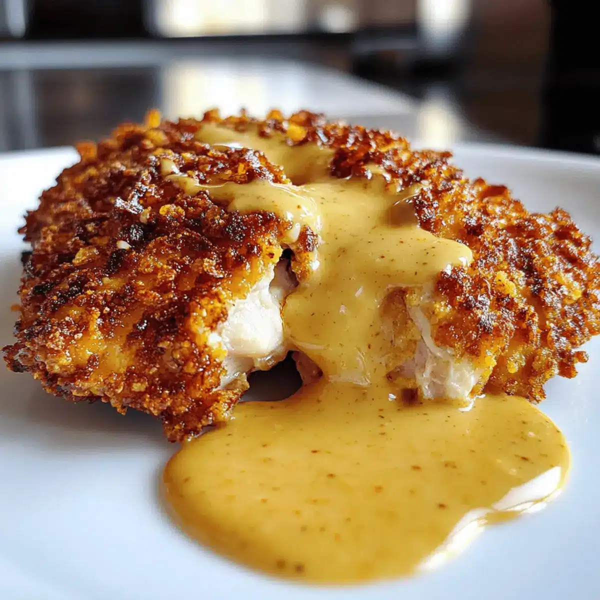 Pretzel Chicken with Mustard-Cheddar Sauce That Delights