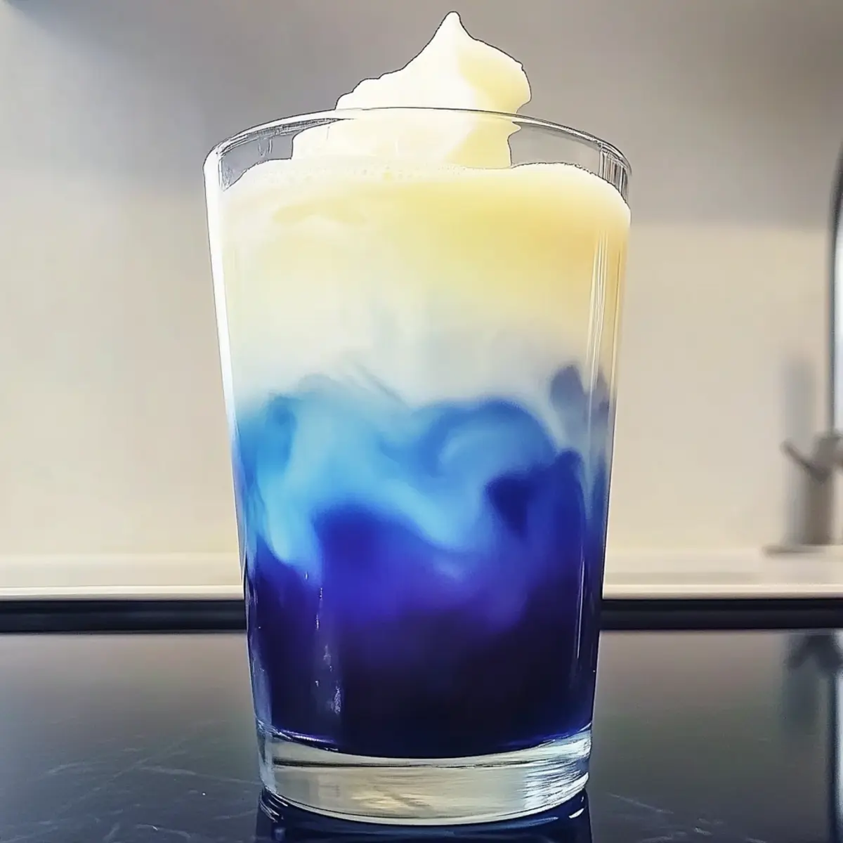 Delight in an Iced Blue Tea Latte with Creamy Vanilla Foam