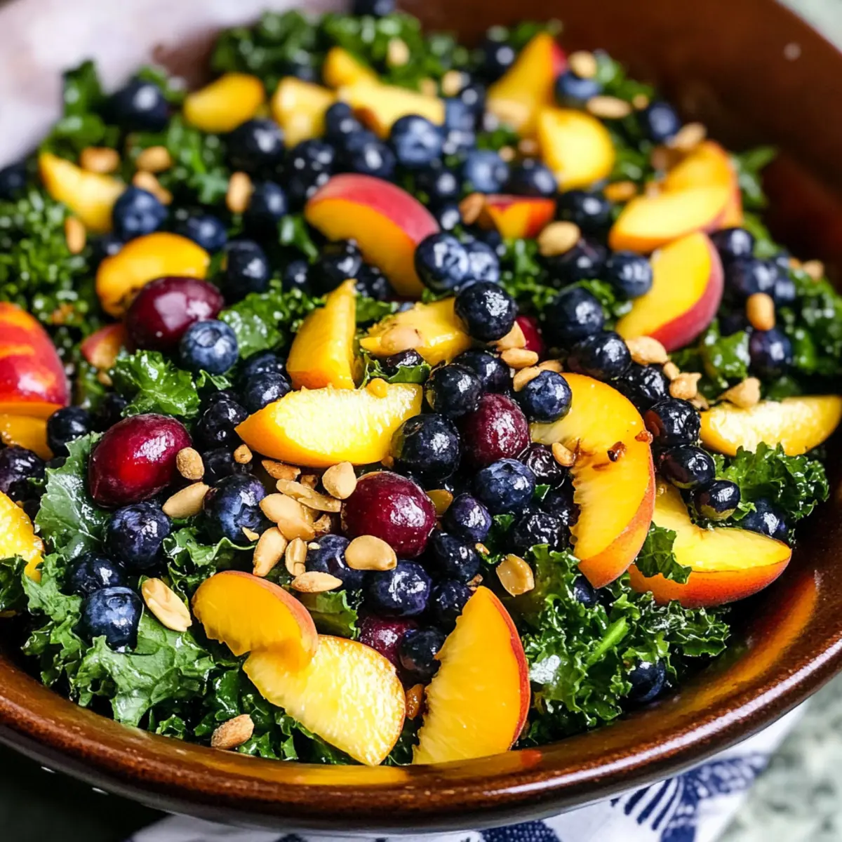 Delicious Summer Peach Blueberry Kale Salad You’ll Love