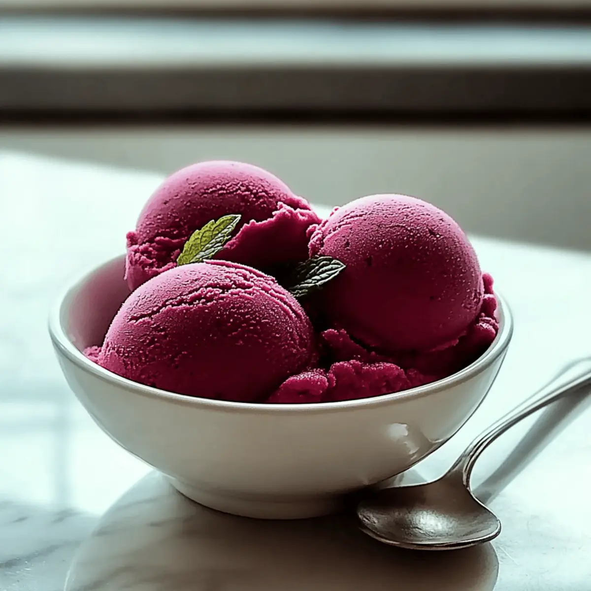 Fresh Mint Leaves: A sprinkle of fresh mint brings a refreshing burst of herbal notes that beautifully balances the sweetness of the sorbet. The bright green garnish also adds a pop of color, making the dessert visually inviting.