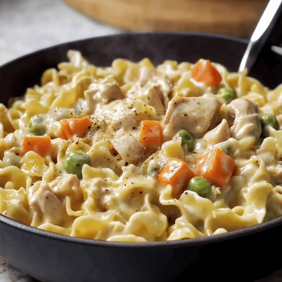Comforting Flavors: This dish combines the familiar taste of chicken pot pie with the beloved texture of pasta, creating a rich and satisfying meal.