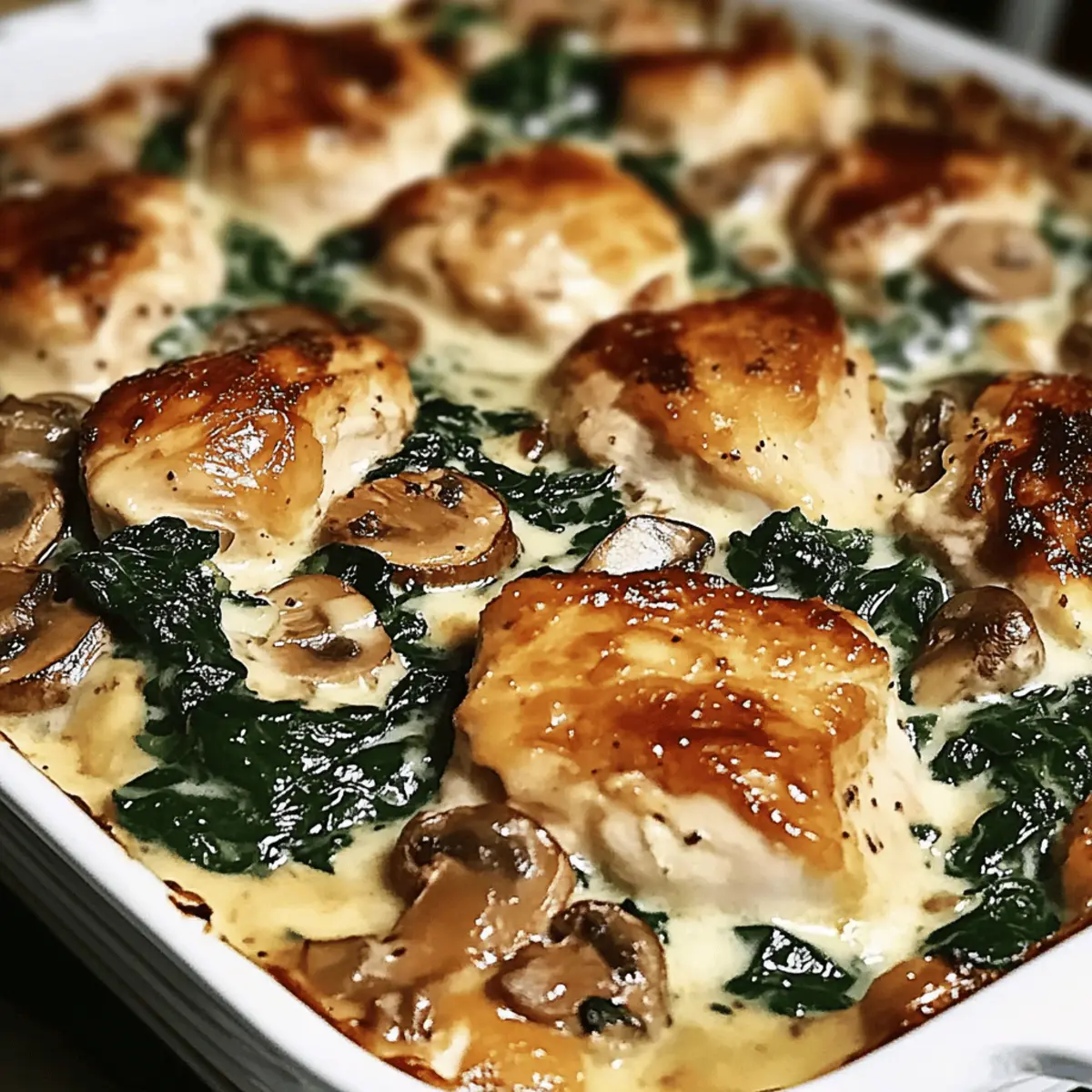 Creamy Chicken, Spinach, and Mushroom Low Carb Oven Dish Delight