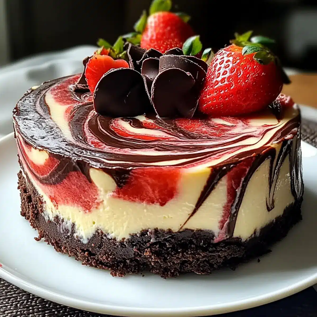 Garnish Wisely: For an impressive presentation, add garnishes like fresh strawberries, chocolate shavings, or a drizzle of chocolate sauce before serving. It elevates your Chocolate Strawberry Swirl Cheesecake!