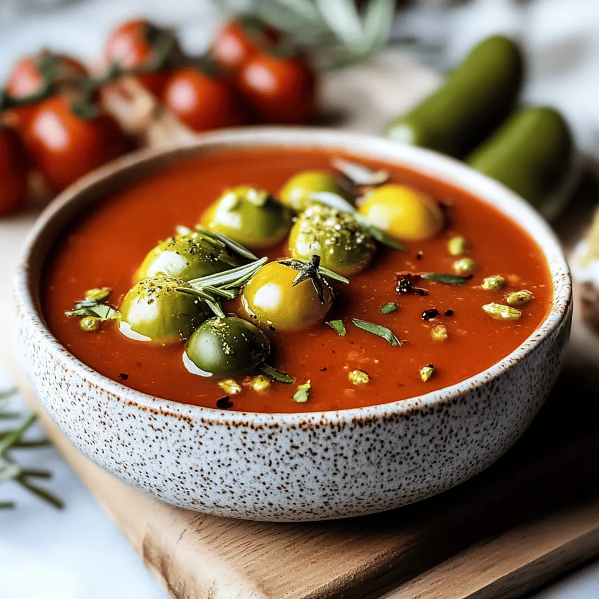 These Zesty Bloody Mary Soup servings are perfect for busy home cooks seeking to simplify their holiday entertaining! You can prepare the soup base (without toppings) up to 3 days in advance and store it in an airtight container in the refrigerator. Just be sure to let it cool completely before refrigerating to maintain its rich flavors. When you’re ready to serve, simply reheat the soup on the stovetop over low heat, stirring occasionally, until warmed through. To finish, add your desired toppings just before serving, ensuring they remain fresh and vibrant, making your guests feel cherished and delighted with minimal effort!
