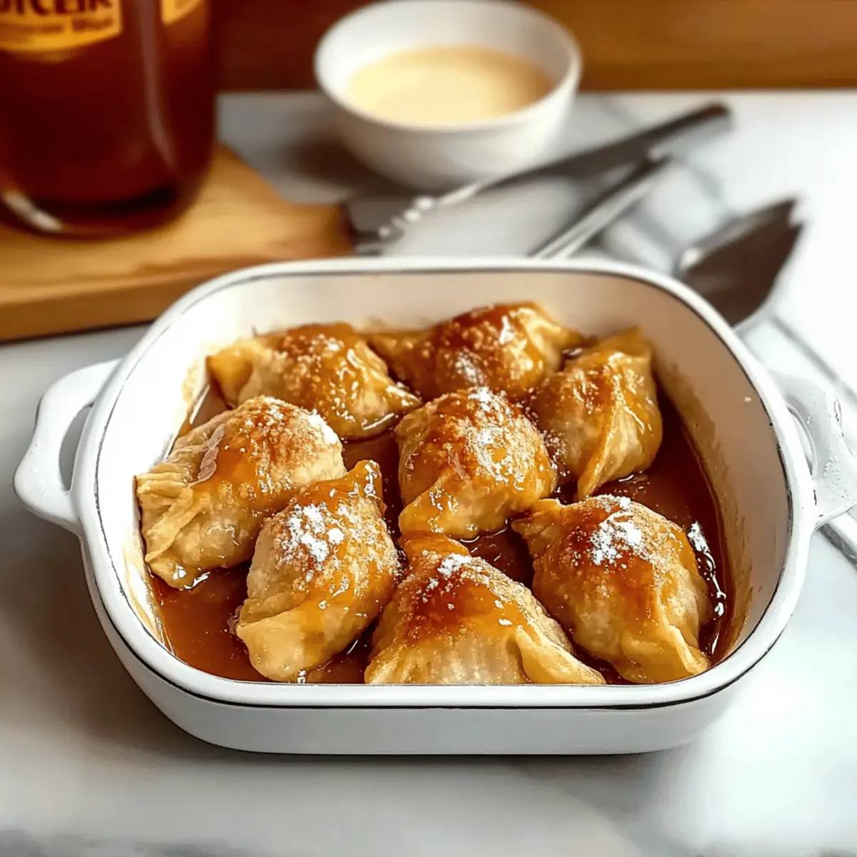 Warm, sweet, and irresistibly gooey, these dumplings whisk you away to a cozy kitchen atmosphere filled with delightful aromas.