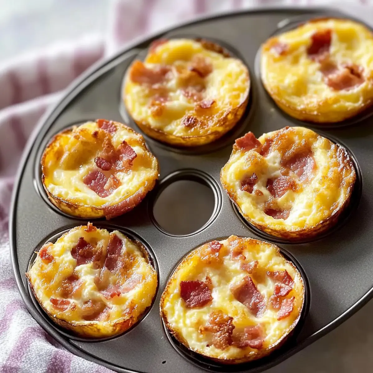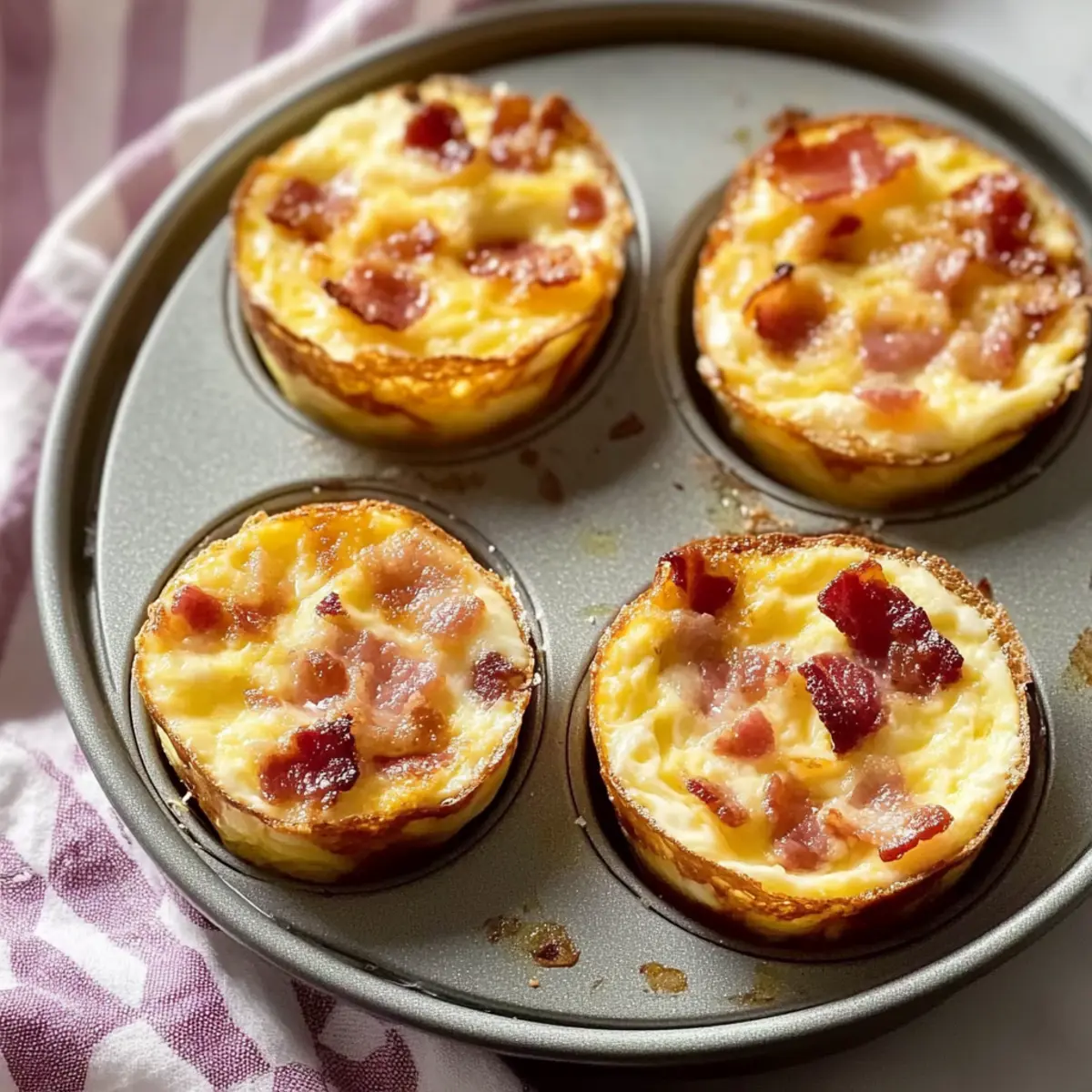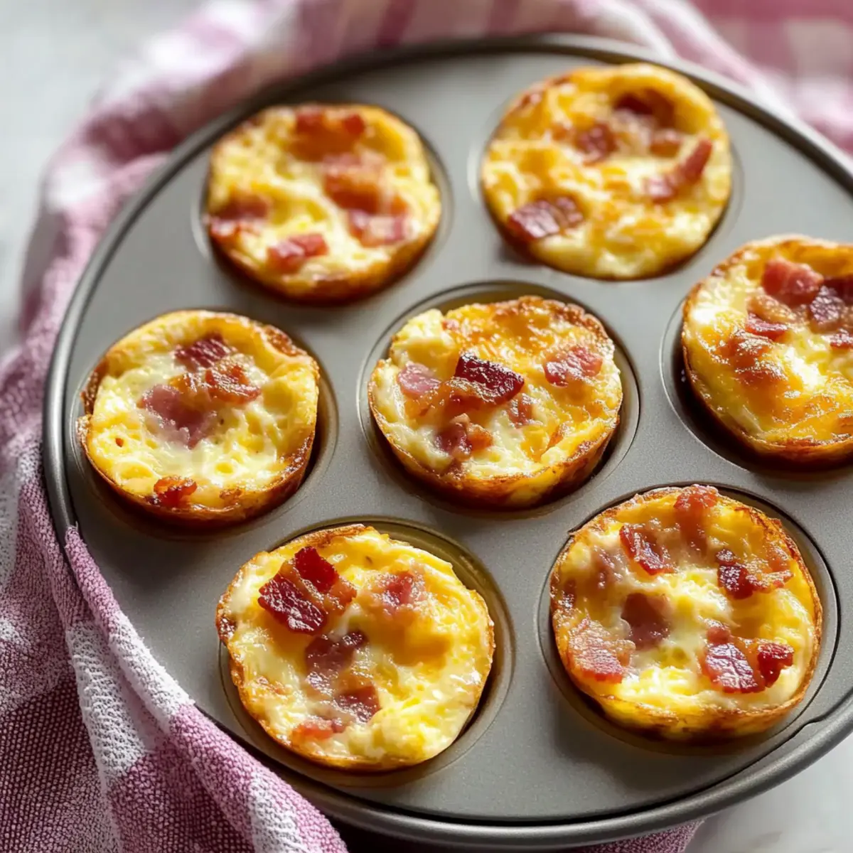 - Generously spray a muffin tin with cooking spray and divide crispy bacon among the muffin cups.