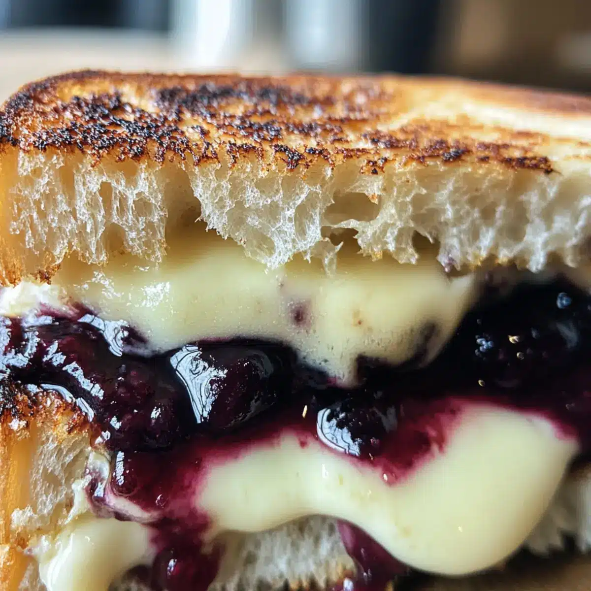 Gourmet Touch: With the combination of sharp white cheddar, creamy mozzarella, and luscious blueberry compote, this sandwich transforms ordinary into extraordinary.