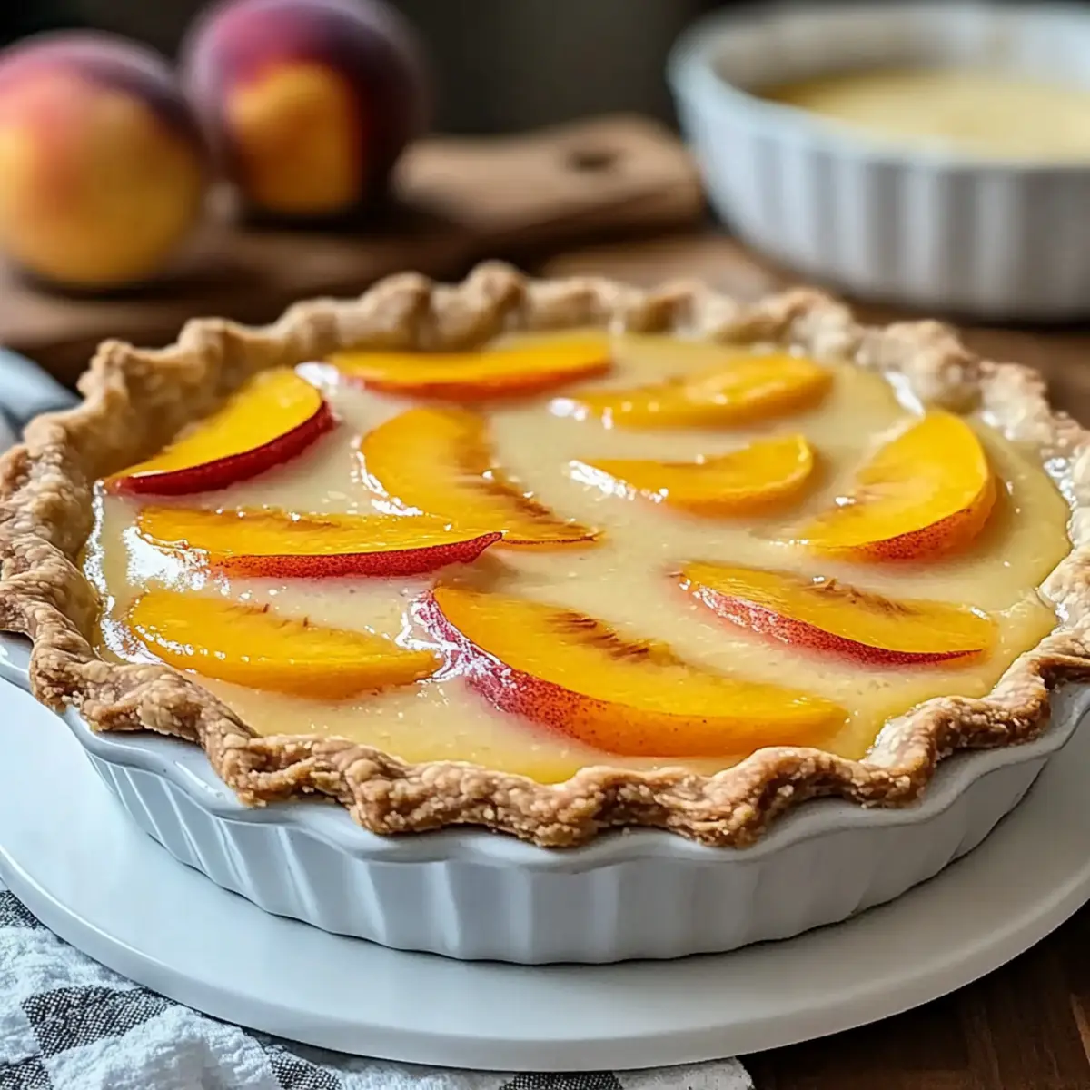 - Spiced Peach Custard Pie: Add ½ tsp of cinnamon and a pinch of nutmeg for warmth, evoking cozy autumn flavors.