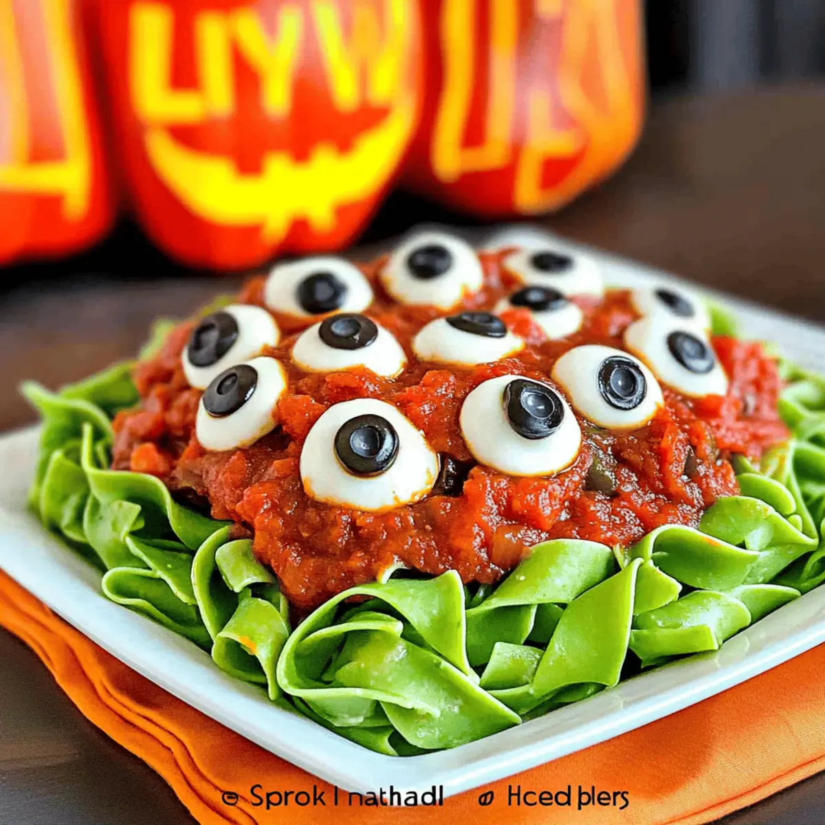 “Did you hear that?” my friend whispered, peering into my kitchen as I prepared for Halloween night. “It smells like something wicked is brewing!” That’s when I unveiled my latest creation: Eyeball Pasta. This dish is not only a spooky delight but also a fantastic way to bring the whole family together for a fun dinner. With vibrant spinach pasta and playful mozzarella-eyes topped with black olive pupils, it’s an engaging twist on traditional Halloween fare. What I love most about this recipe is how quick it is to whip up—just 35 minutes of prep time—and its ability to evoke a sense of wonder in both kids and adults alike. Whether you’re planning a Halloween feast or just looking to bring a smile to your loved ones’ faces, Eyeball Pasta is a delightful choice. So, what’s stopping you from adding a little spooky magic to your dinner table tonight?