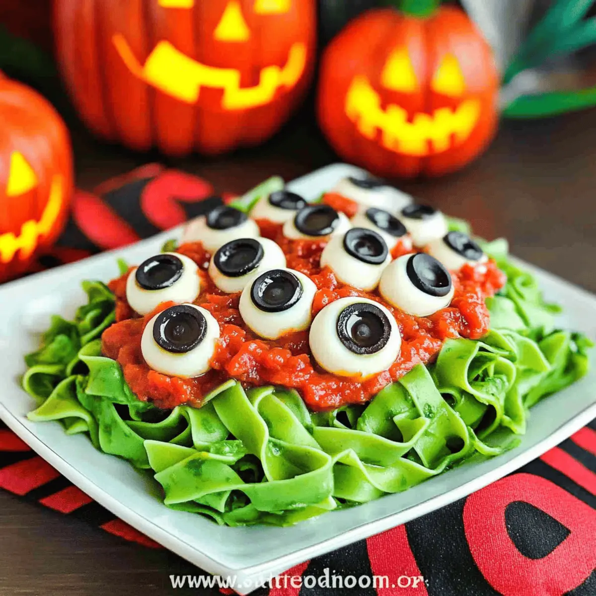Plate the sauced spinach pasta into individual bowls or one large serving dish. Carefully arrange the assembled eyeballs on top, placing them strategically to maximize their spooky appeal. Serve immediately while the pasta is warm, and watch as your family’s faces light up with delight at this creepy culinary creation!