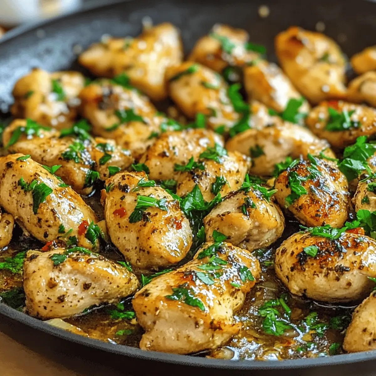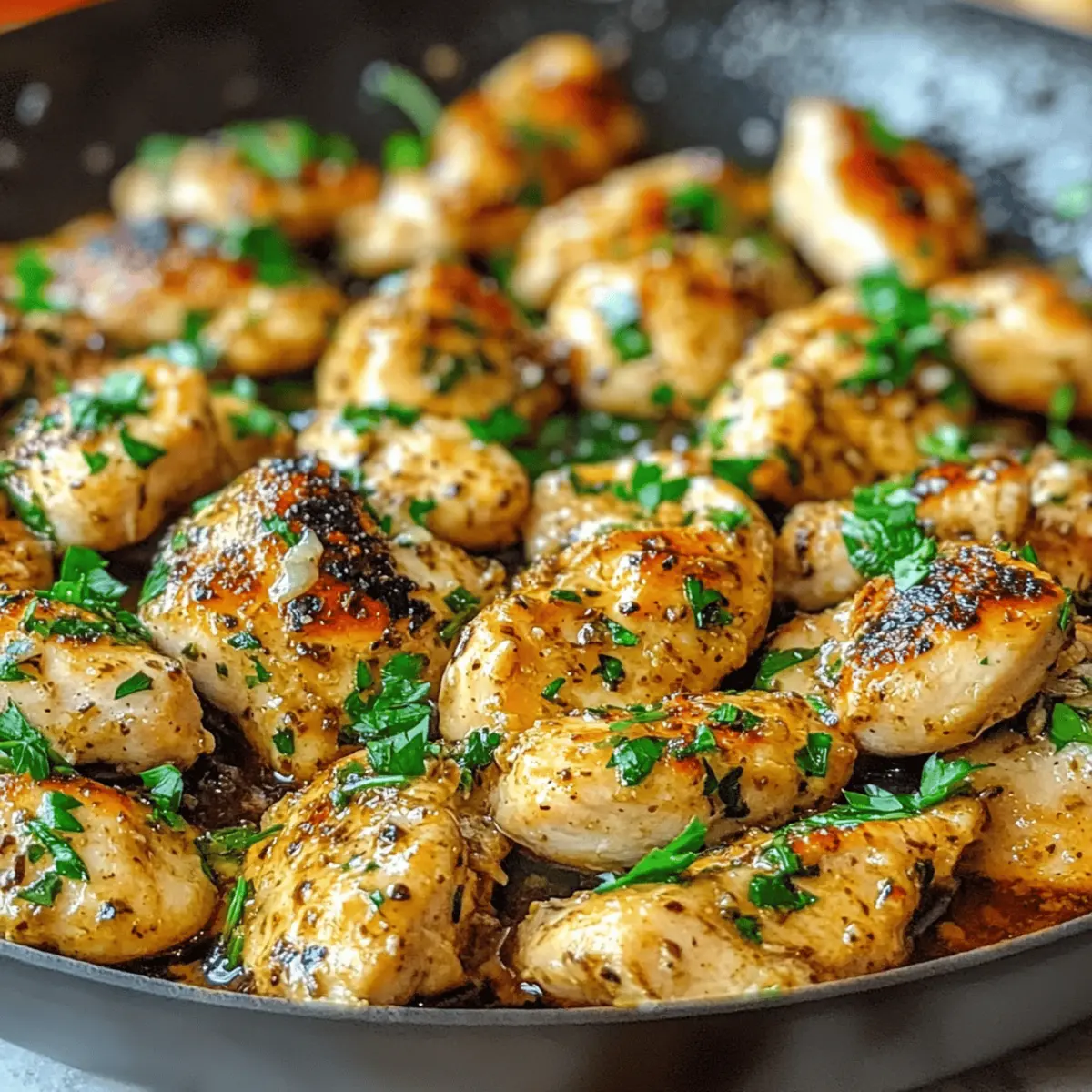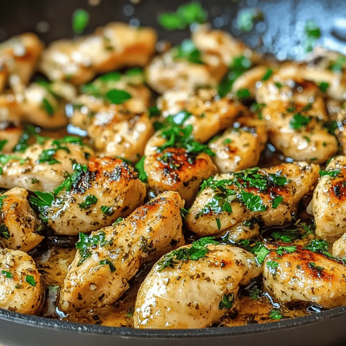 Once heated, remove the skillet from the heat and garnish your Garlic Chicken Skillet with fresh chopped parsley for a touch of color. Serve immediately while hot, enjoying the comforting aroma that fills your kitchen and savoring every delicious bite.