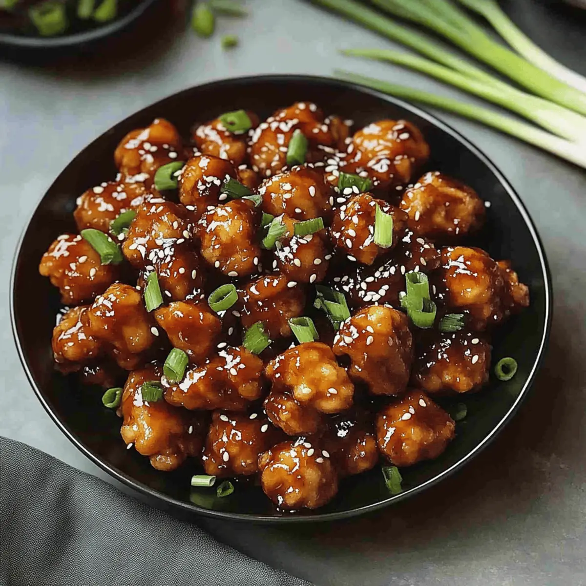 - Add the fried chicken pieces to the sauce, toss gently to coat, and heat through for an additional 2 to 3 minutes. Garnish with sesame seeds and green onions before serving.