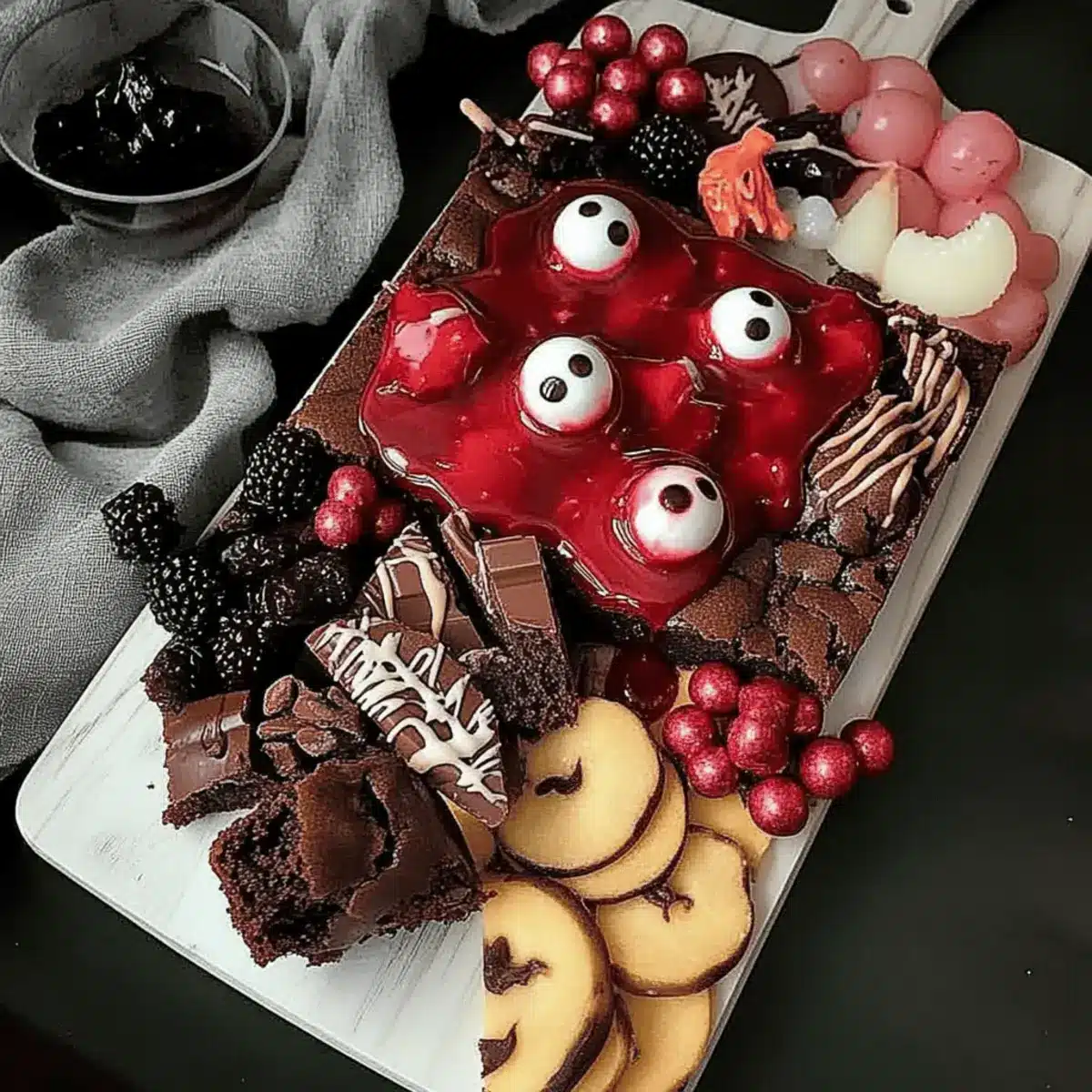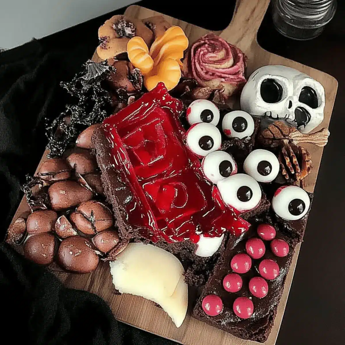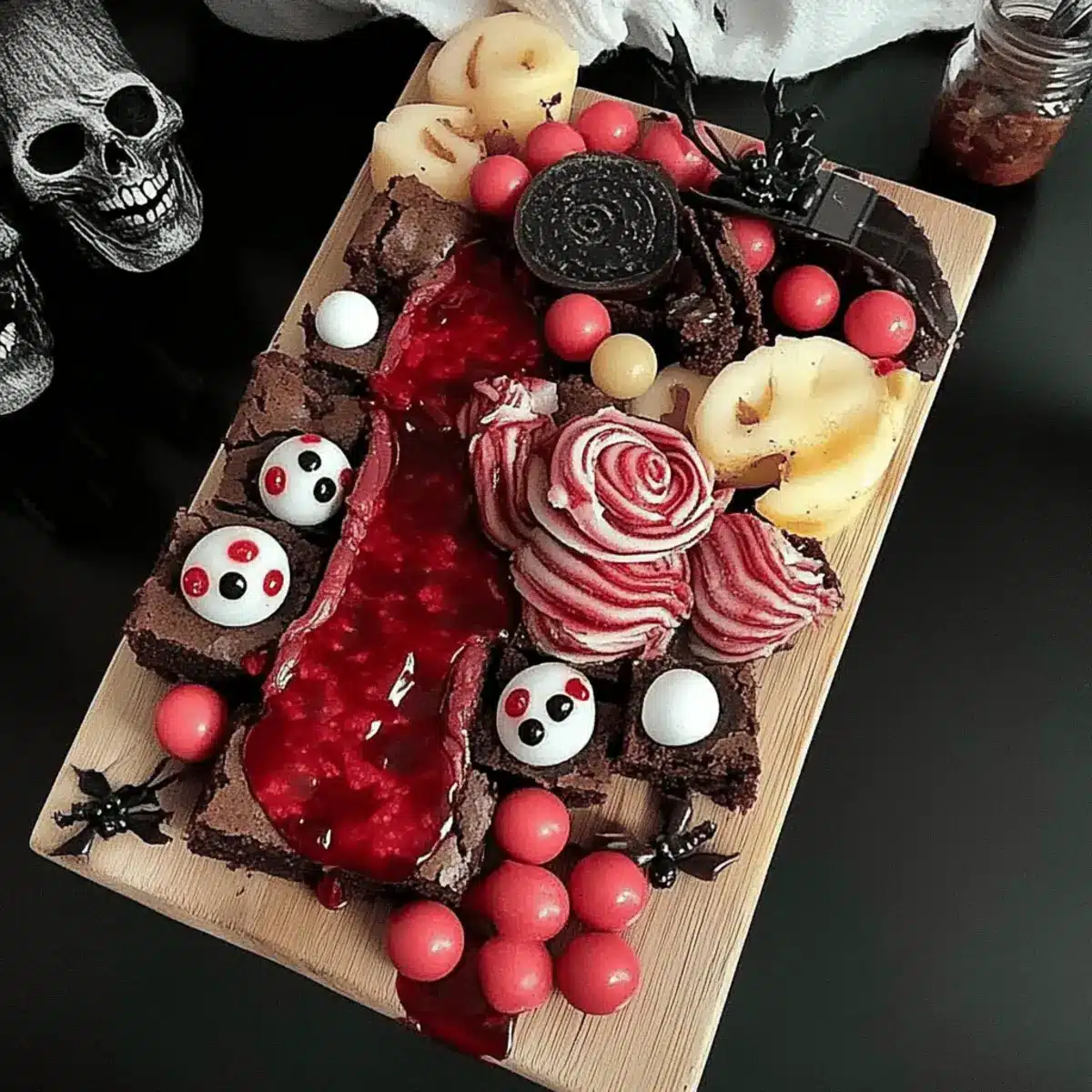 - Themed Garnishes: Use pomegranate seeds as “bloody” accents sprinkled around the board to reinforce the Halloween theme, adding a pop of color and sweetness.