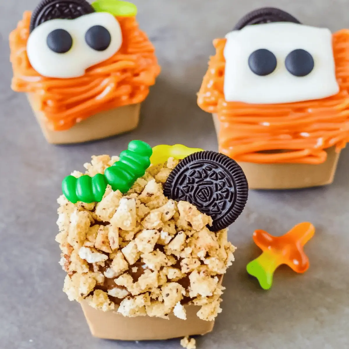 - Creepy Dirt Cups: Layers of chocolate pudding, crushed Oreos, and gummy worms echo the fun texture and theme, creating a fun, interactive dessert option that kids will love.