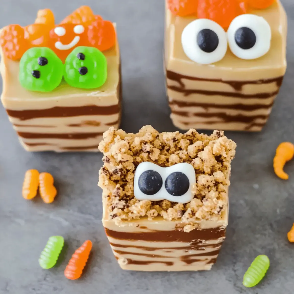 Rice Crispy Monsters: Shape treats into monsters with candy corn teeth and gummy candies for eyes, bringing creative designs to life.