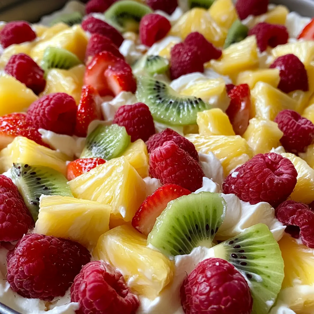 Tropical vibes take center stage with this Hawaiian Cheesecake Salad! You’ll adore how effortlessly it combines the creamy goodness of cheesecake with the refreshing pop of vibrant fruits like juicy pineapple, sweet strawberries, tangy kiwi, and plump raspberries. This no-bake delight not only makes for an impressive centerpiece at summer gatherings but also serves as a quick and delightful weekday treat for the whole family. Imagine savoring each velvety spoonful, bringing smiles without the fuss of baking. With just a few simple ingredients, you can whip up a dessert that feels indulgent yet light—perfect for those busy evenings when you crave something special without the hassle. Curious about how to make this tropical wonder come to life? Let’s dive into the recipe!