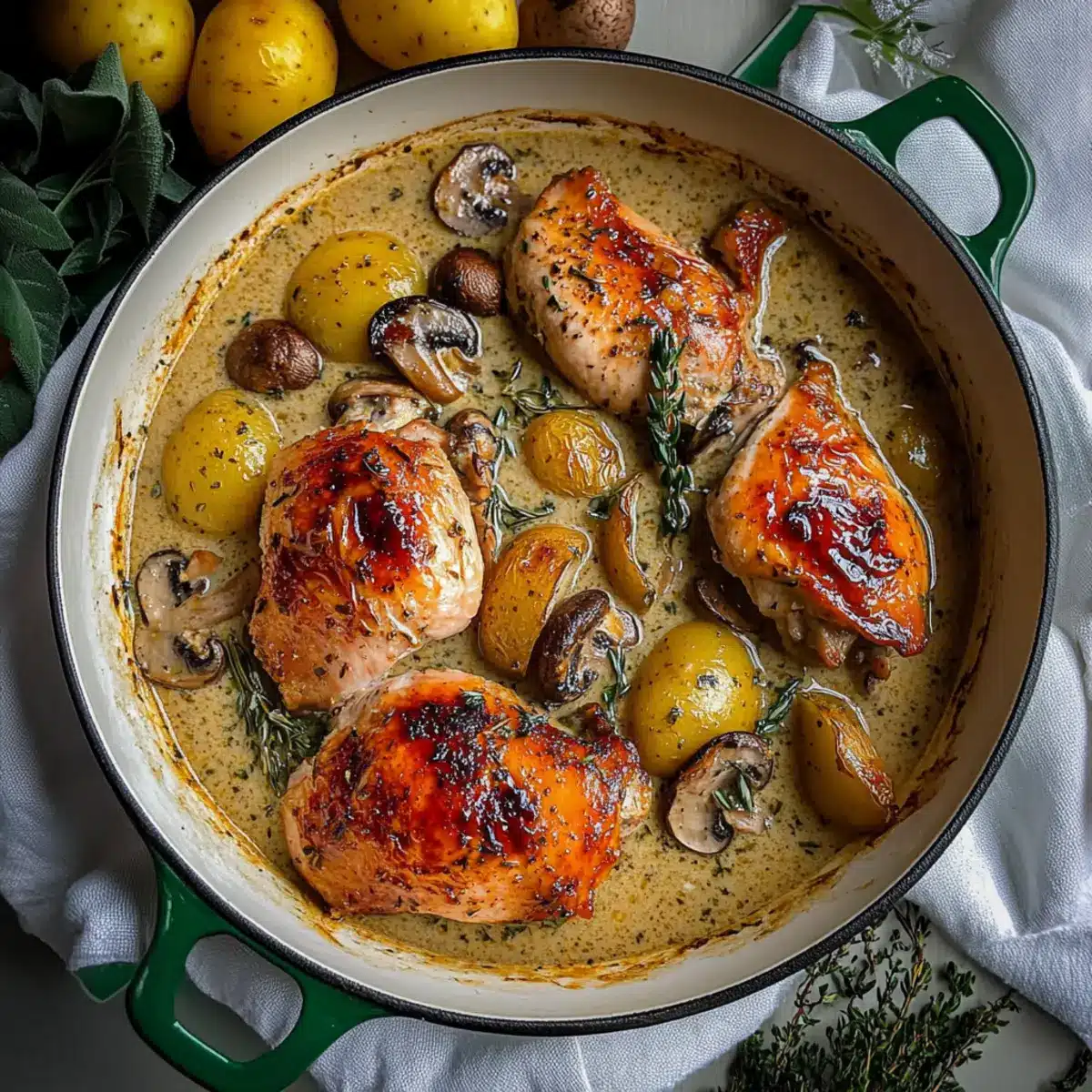Herb Roasted Chicken in Creamy White Wine Sauce for Cozy Nights