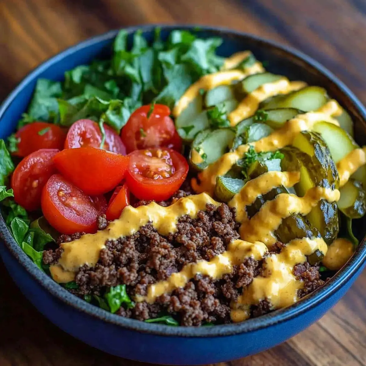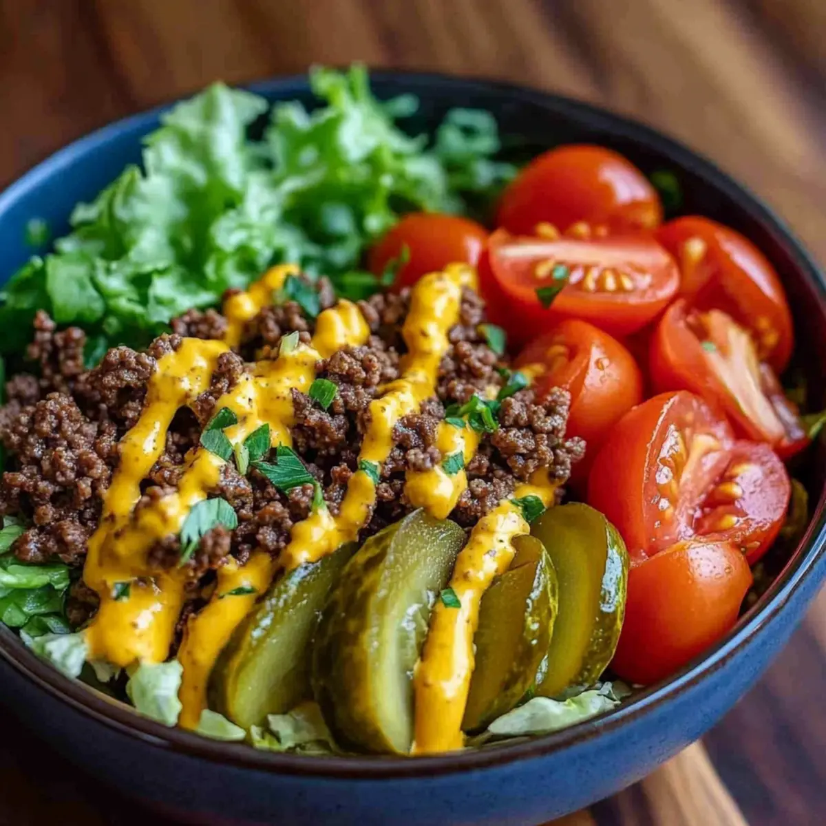 Satisfying Flavors: The rich, savory meat combined with fresh veggies delivers every bit of cheeseburger nostalgia without the heaviness. Customizable Options: With choices for proteins and bases, you can tailor this recipe to fit any dietary preference or craving. Meal Prep Friendly: Prepare everything in advance for quick meals throughout the week, making healthy eating so much simpler. Low-Carb Delight: Perfectly aligned with keto and paleo diets, these bowls will keep you full without the carbs. Want something similar? Try our High Protein Breakfast Burrito for a great morning boost!