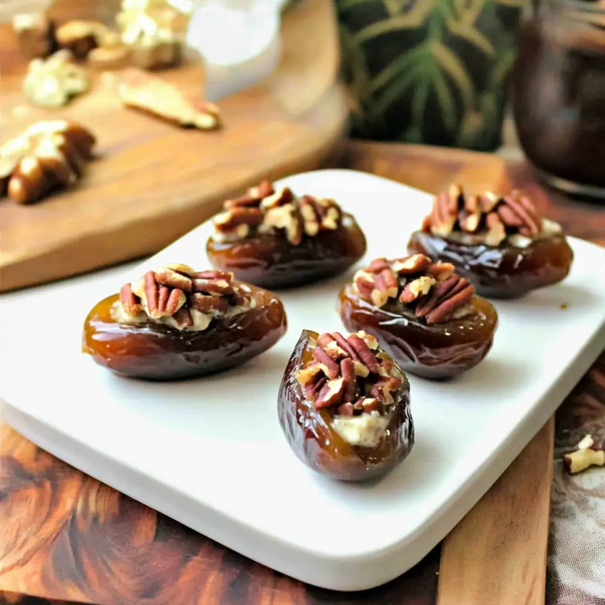 Cheese Board: A variety of cheeses like creamy goat cheese or sharp cheddar can balance the sweet and creamy flavors of the dates perfectly. Pairing sweet with savory adds depth to your appetizer spread.