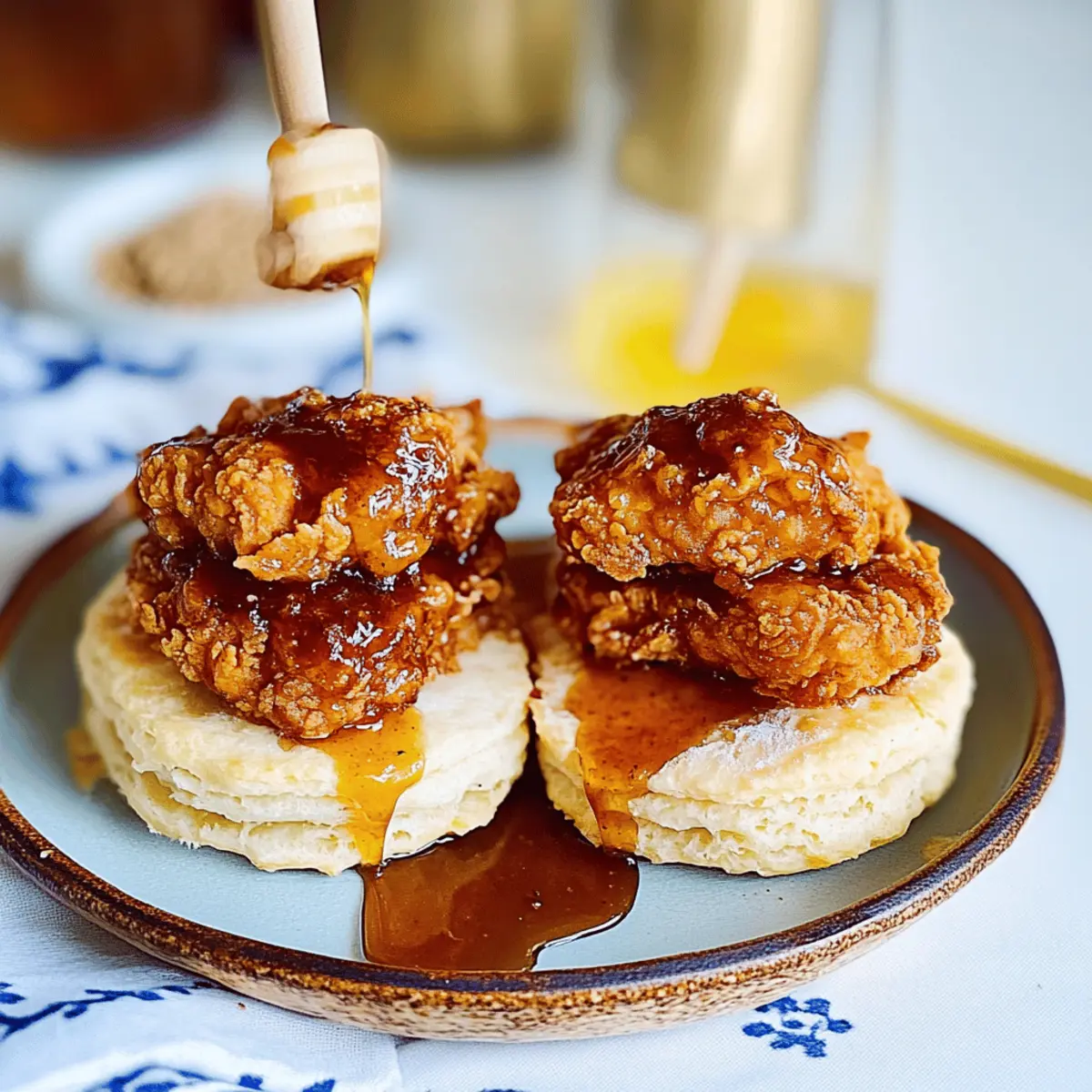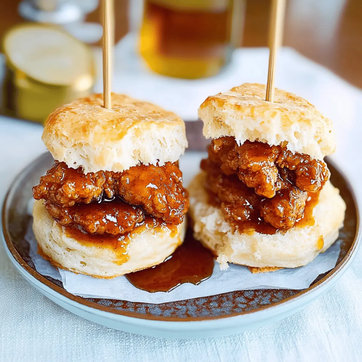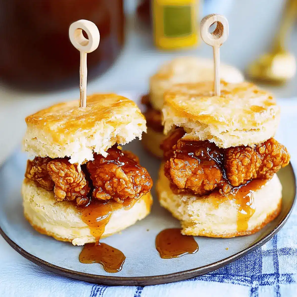Fun Serving Options: For a party, turn these biscuits into bite-sized appetizers using cocktail-sized biscuits and chicken pieces, drizzled with hot honey for easy snacking.