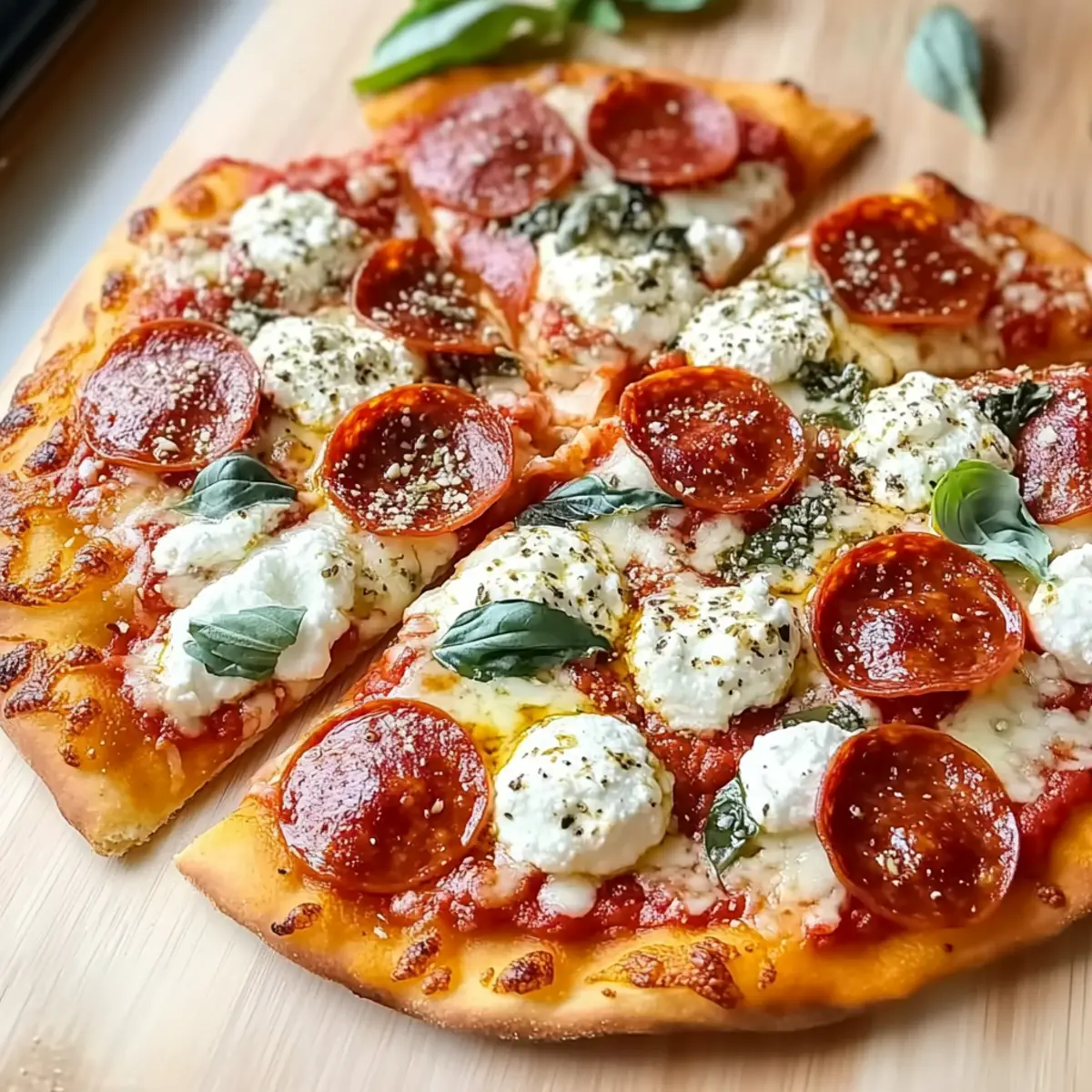 Begin by preheating your oven to 500°F (260°C). Place a pizza stone or a baking sheet inside to heat up for at least 30 minutes. This high temperature will help achieve the perfect crispy crust for your Hot Honey Pepperoni Ricotta Pizza, so don’t rush this step!
