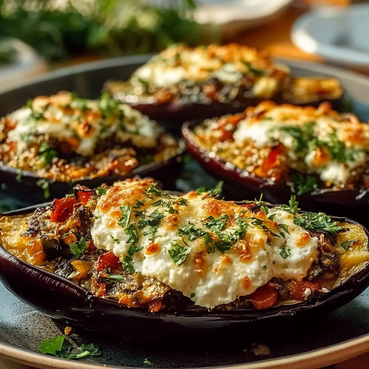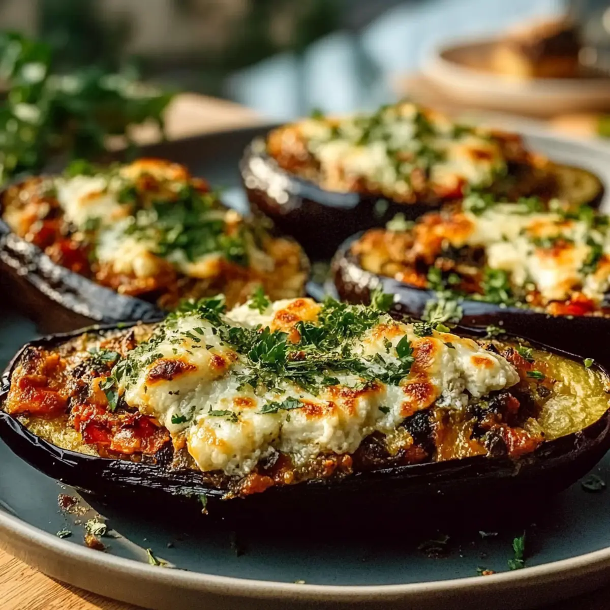 Rest Before Serving: Allow the stuffed eggplants to cool for about 10 minutes after baking. This helps the flavors meld and makes serving easier.