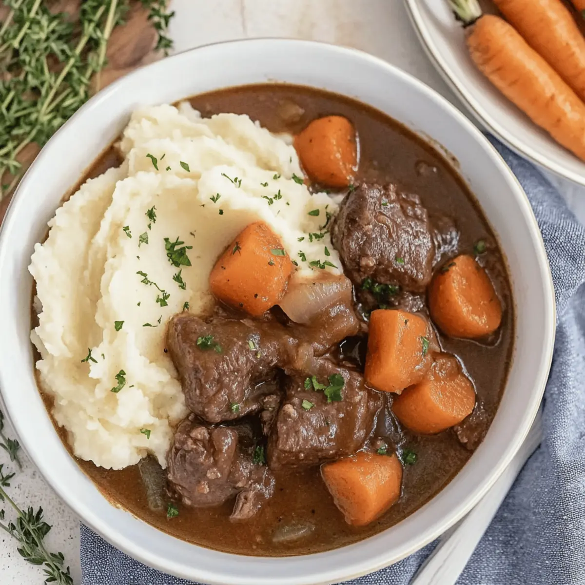 - Serve the stew in bowls with a mound of mashed potatoes.