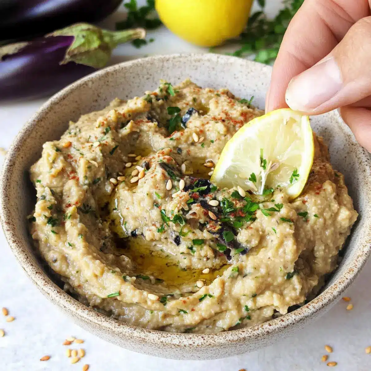 These Lebanese Baba Ganoush are perfect for meal prep enthusiasts looking to save time during busy weeknights! You can roast the eggplants up to 24 hours in advance; simply let them cool, peel, and store the flesh in an airtight container in the fridge. The tahini mixture can also be prepared up to 3 days ahead, allowing the flavors to meld beautifully. To maintain that velvety texture, remember to drain the eggplant well to prevent excess moisture. When you’re ready to serve, mix the eggplant with the tahini and spices, give it a final taste for seasoning, and garnish with fresh herbs and sesame seeds for a perfect presentation. Enjoy hassle-free, delicious results with these make-ahead tips!