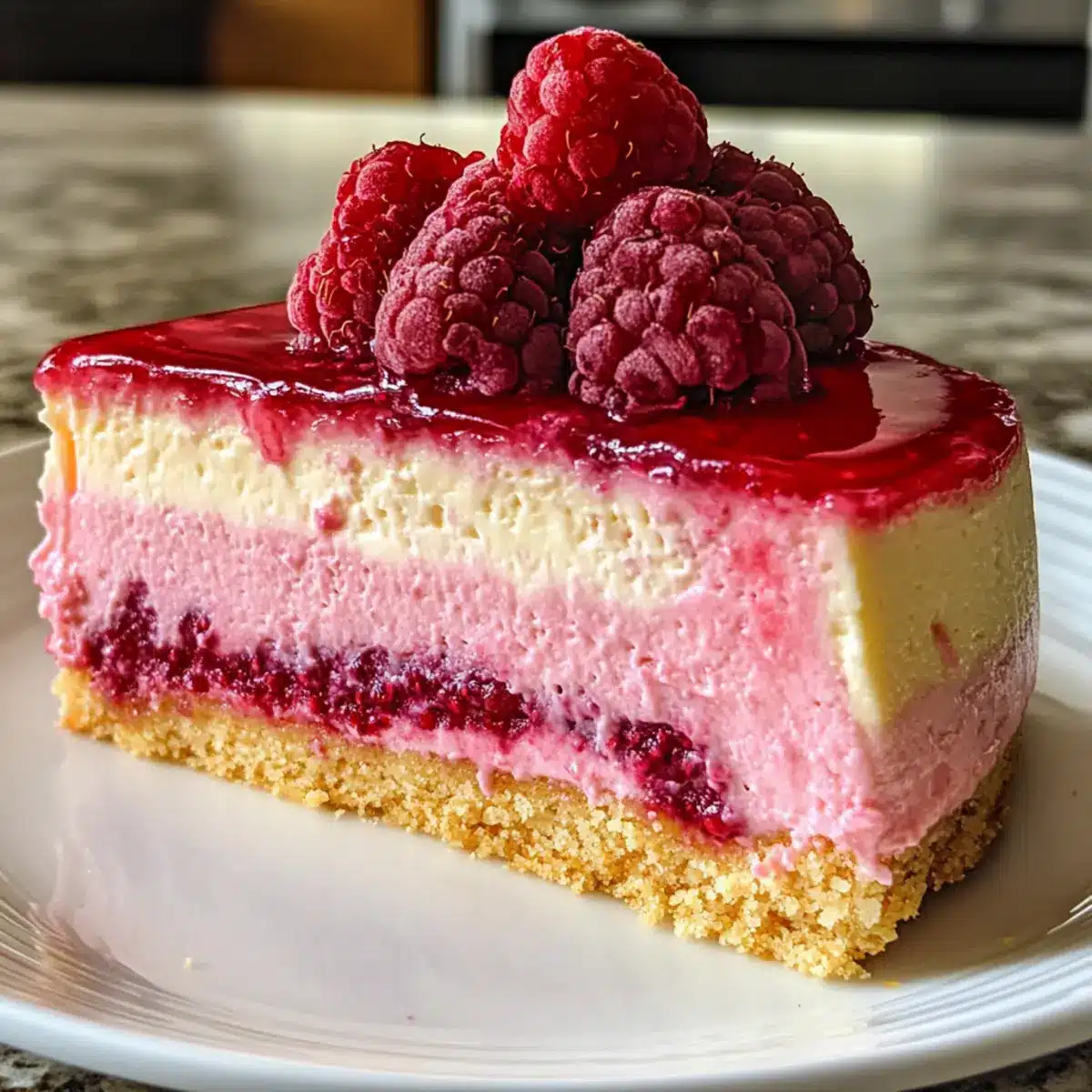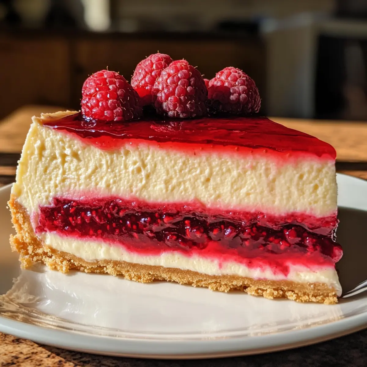 • Fresh Raspberries – Adds a burst of color and texture; they beautifully complement the cheesecake’s flavors.