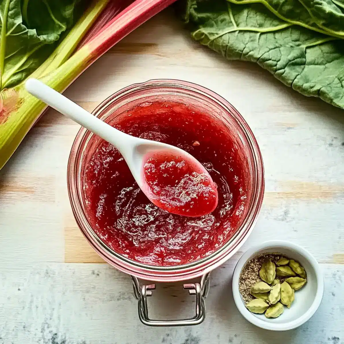Simplicity is key: With just a few ingredients and straightforward stovetop instructions, you can create this delightful jam in no time. Unique Flavor: The combination of tart rhubarb and rich maple syrup, accented with a hint of cardamom, sets this preserve apart from traditional recipes. Versatile Use: Perfect for toast, scones, or even as a topping for ice cream, this jam adds an exciting twist to any dish. Small-Batch Convenience: This recipe is designed for those who want to enjoy homemade jam without the commitment of large batches, making it easy to whip up whenever you please. Lastly, Fresh and Light: Unlike store-bought versions packed with added sugars, this not-too-sweet jam is a healthier option that preserves the essence of its ingredients beautifully. If you’re intrigued by other easy homemade treats, check out my guide on simple preserves for more delicious ideas!