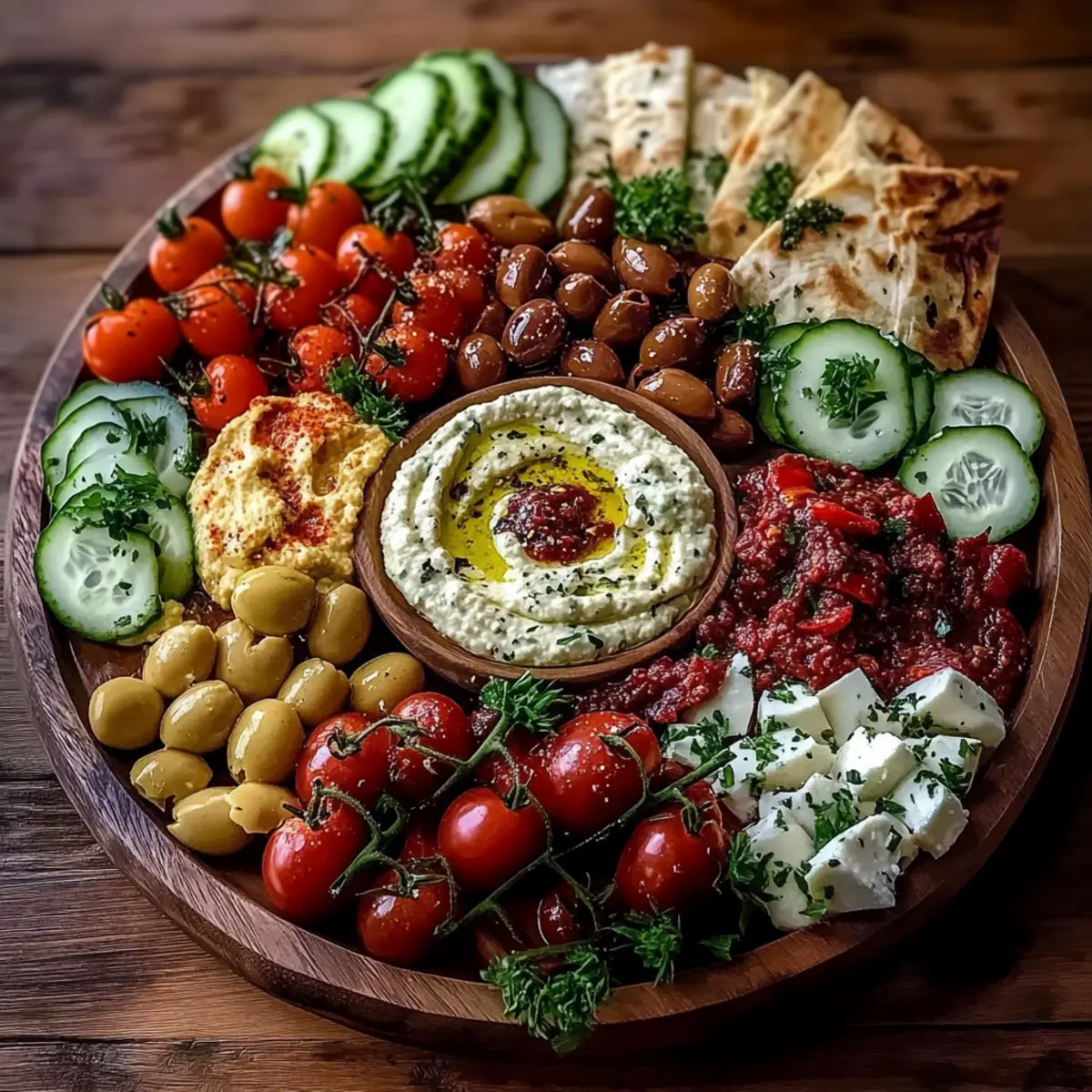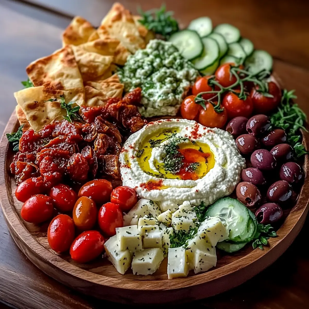 Here’s a charming secret! To create an eye-catching presentation, arrange the colorful ingredients by grouping them in separate sections on a large wooden board. Use small bowls for dips at the center and fill in the spaces with your veggies, cheese, and pita wedges. Drizzling a bit of olive oil over the entire spread before serving adds a lovely sheen and invites your guests to indulge. The more you share love through food, the merrier the gathering becomes!