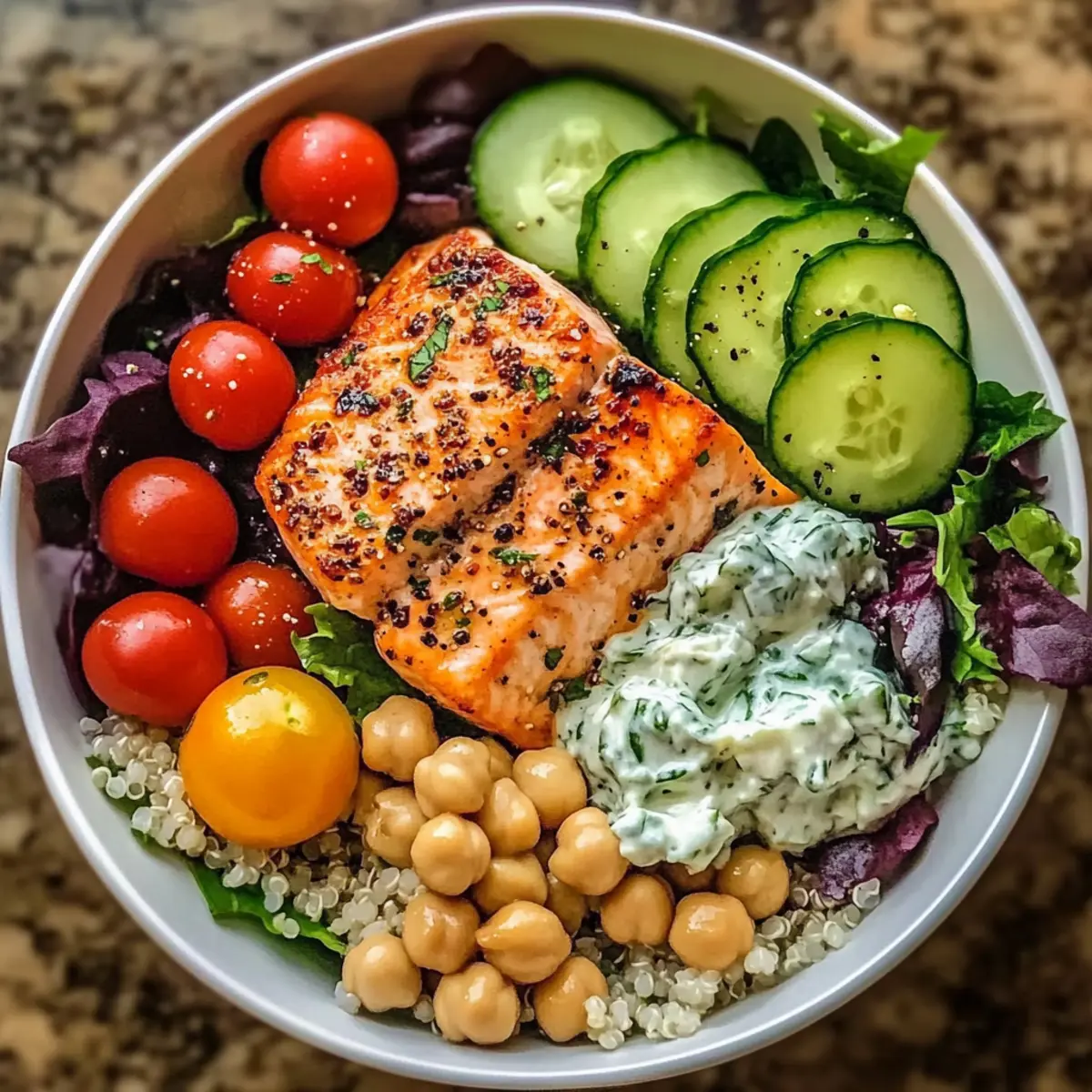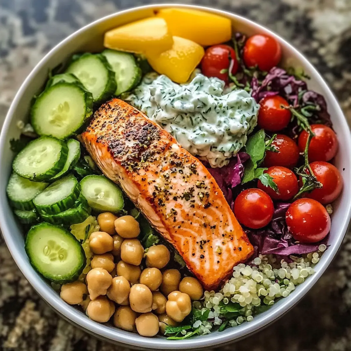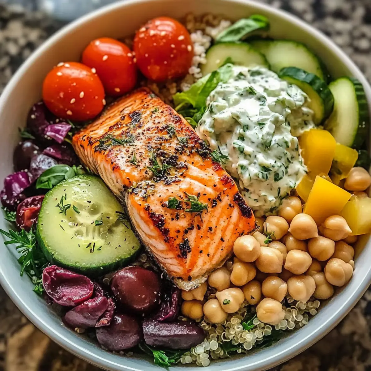 - Marinate Well: Ensure you marinate the salmon for at least 15 minutes; this enhances the flavor of the Mediterranean Salmon Bowl.