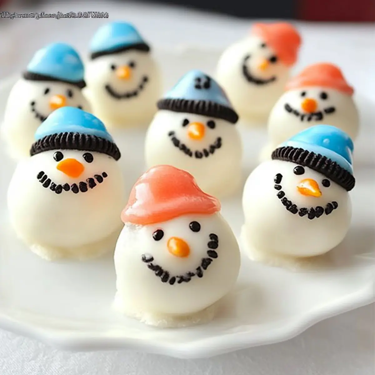 Themed Colors: Replace the vanilla candy coating with red or green candy melts to celebrate special occasions or holidays. These vibrant colors will make your snowmen pop on any dessert table.