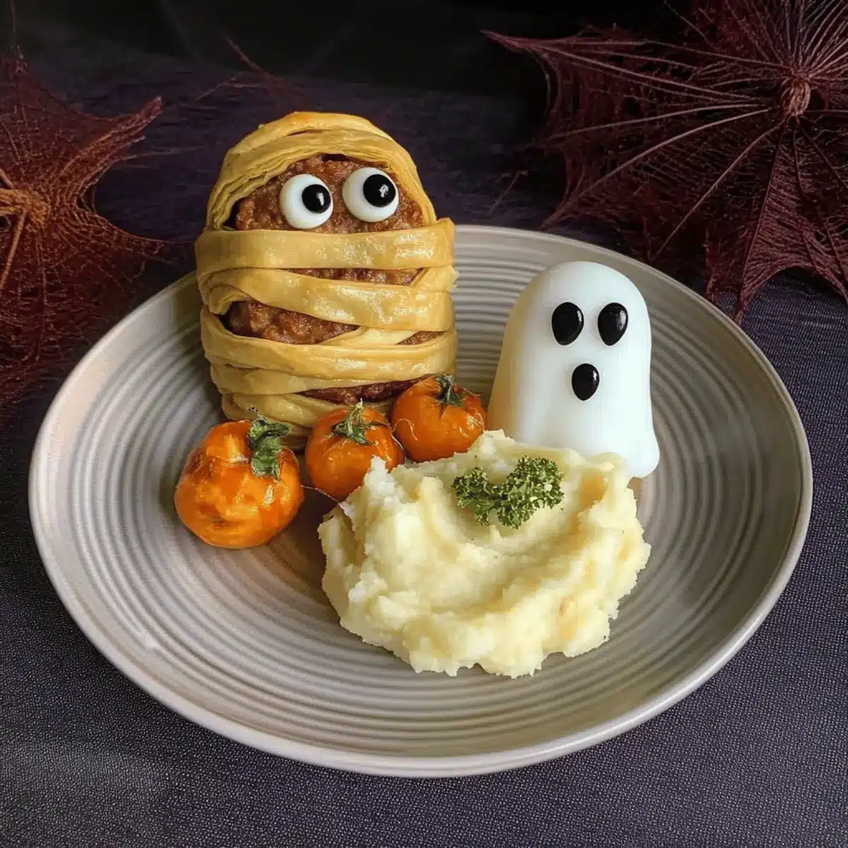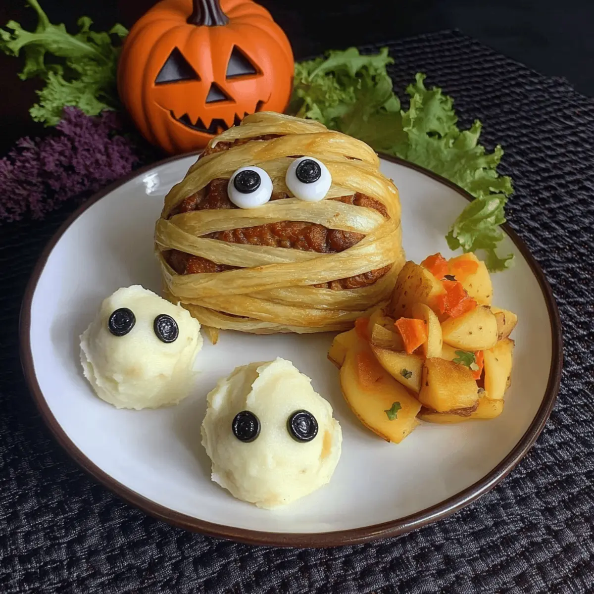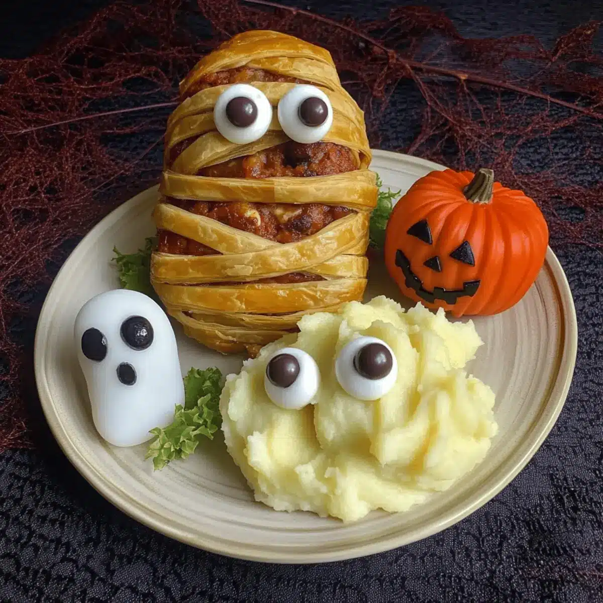 Mummy Meatloaf with Mashed Boo-tatoes for a Spooky Feast