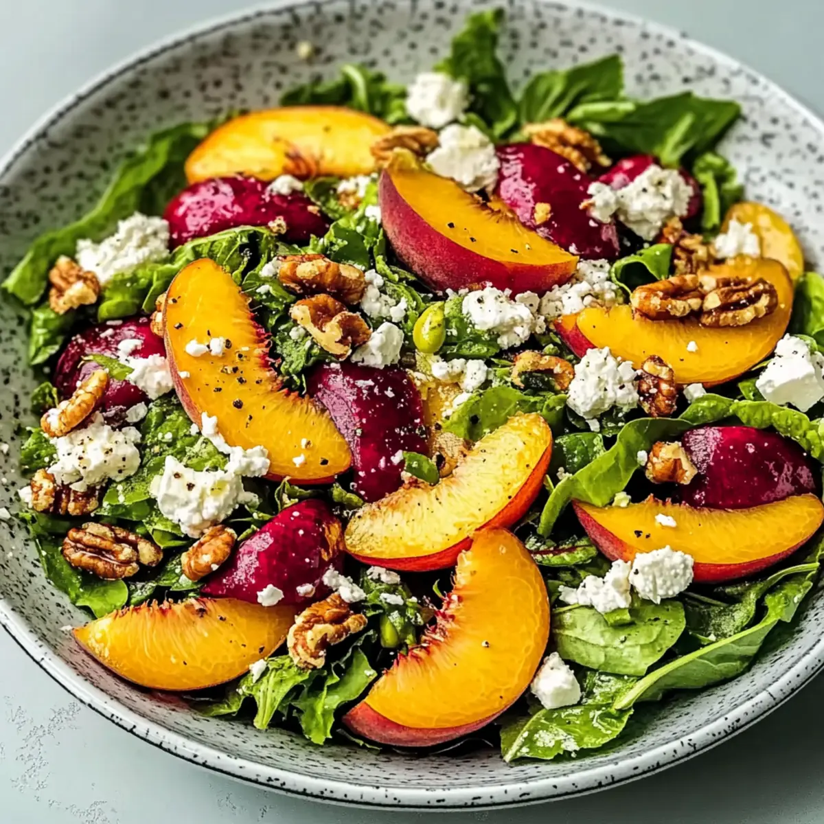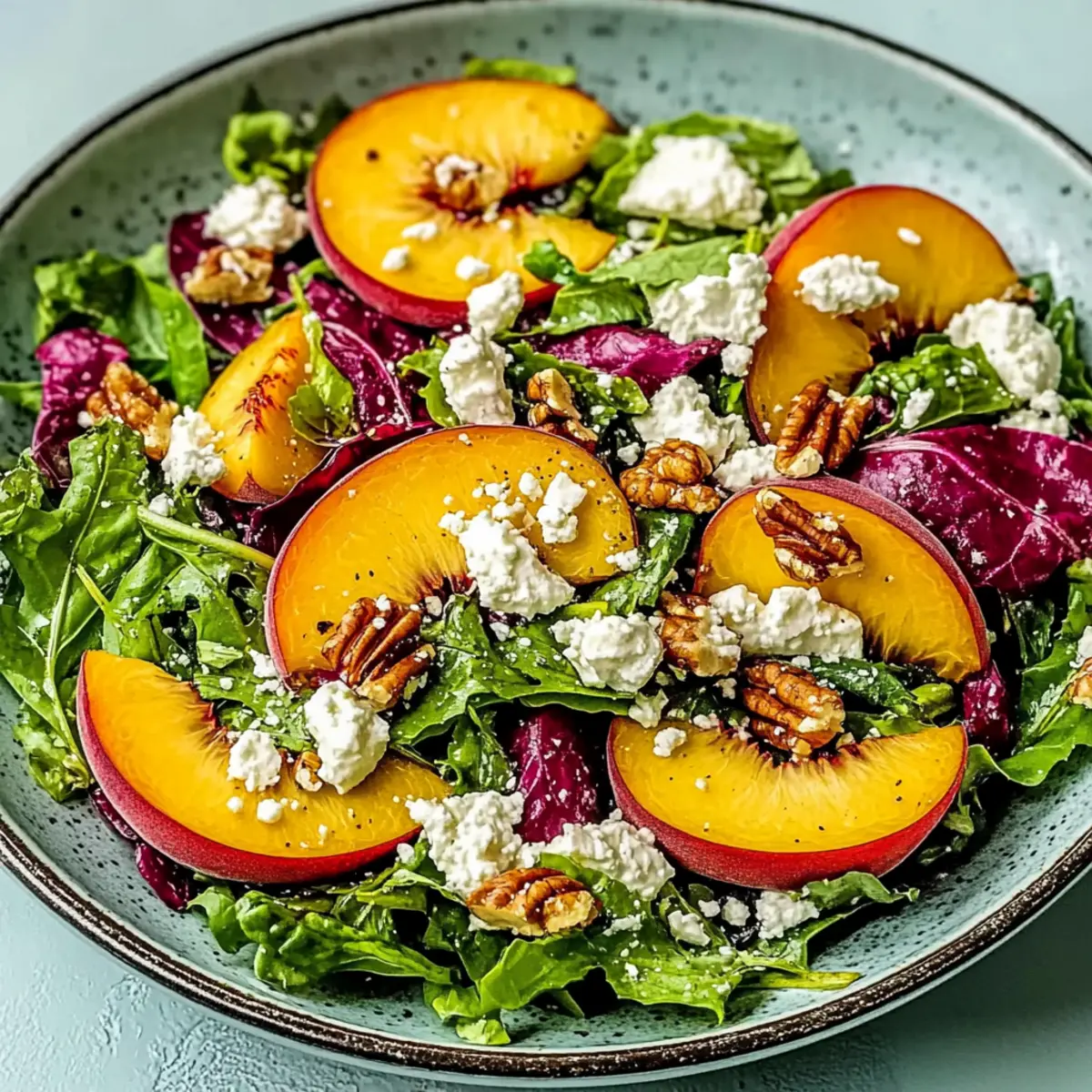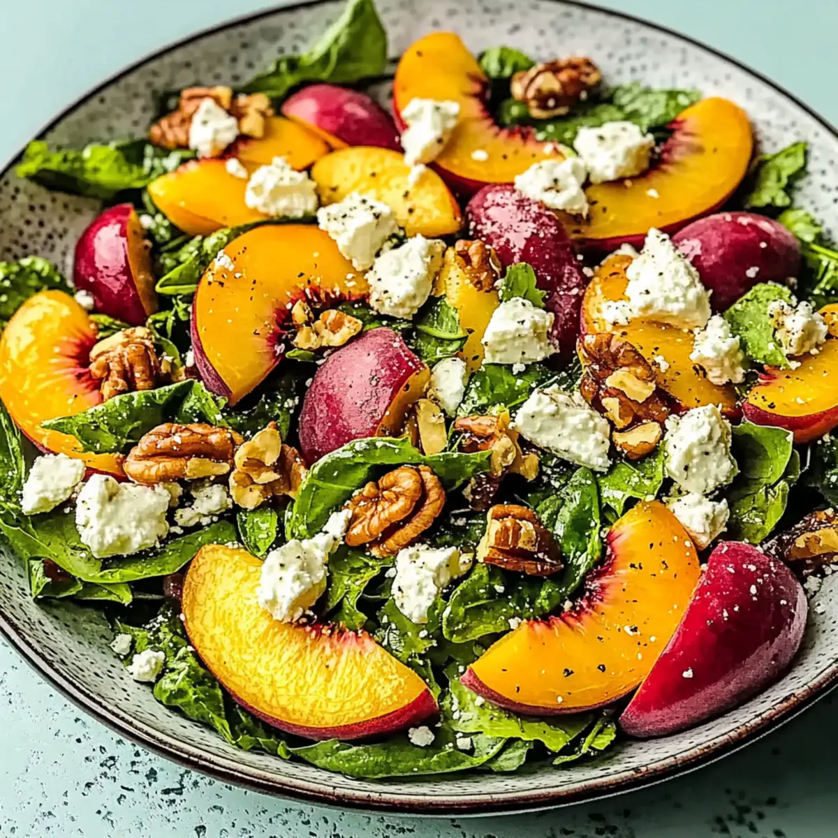 Bright, Fresh Ingredients: The combination of ripe peaches paired with baby spinach or arugula creates a vibrant base, delivering summer in every bite.