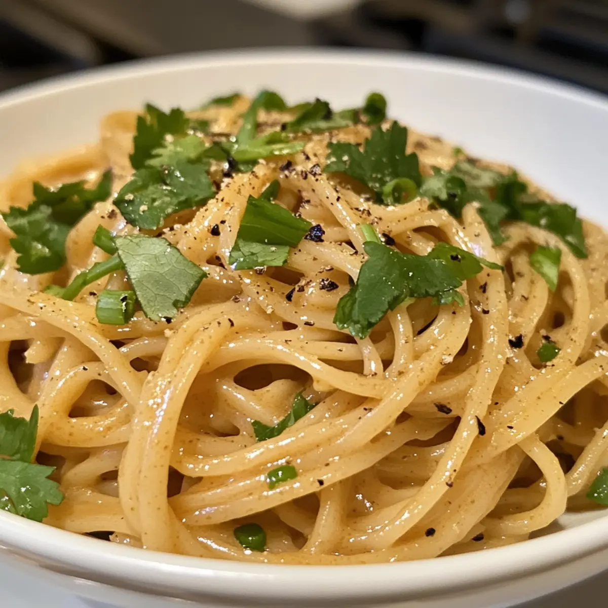 Your 5-Minute Peanut Noodles are now ready to devour! Serve them immediately while hot, and for an extra layer of flavor, drizzle a bit more chili oil on top. Optionally, garnish with freshly chopped cilantro or sliced green onions for a pop of color and freshness that complements the creamy noodles beautifully.