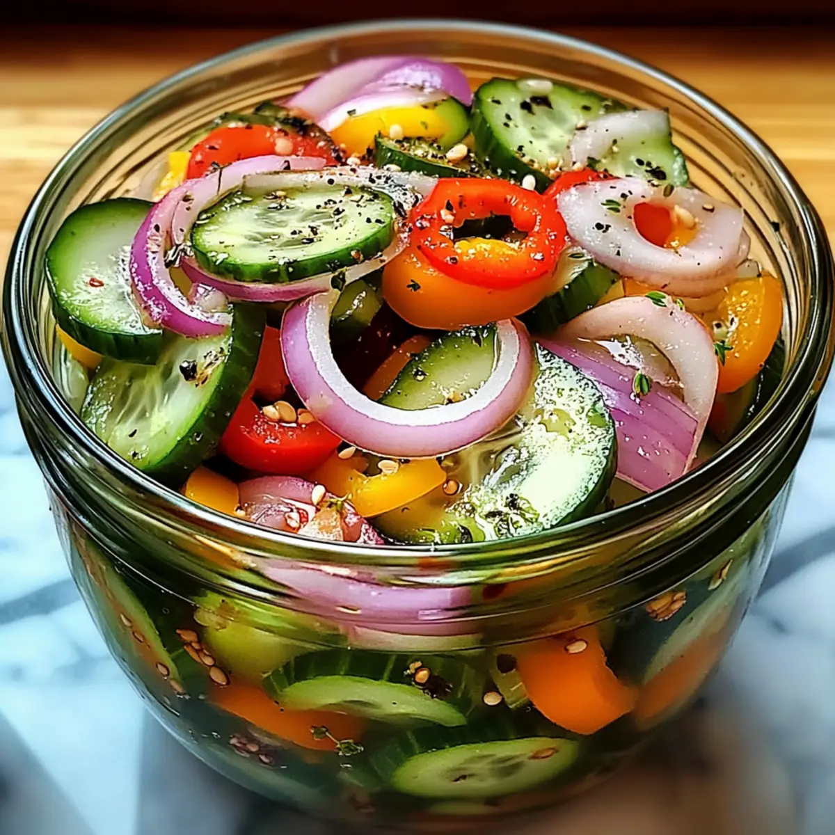 Zesty Pickled Cucumber, Onion, and Bell Pepper Salad Delight