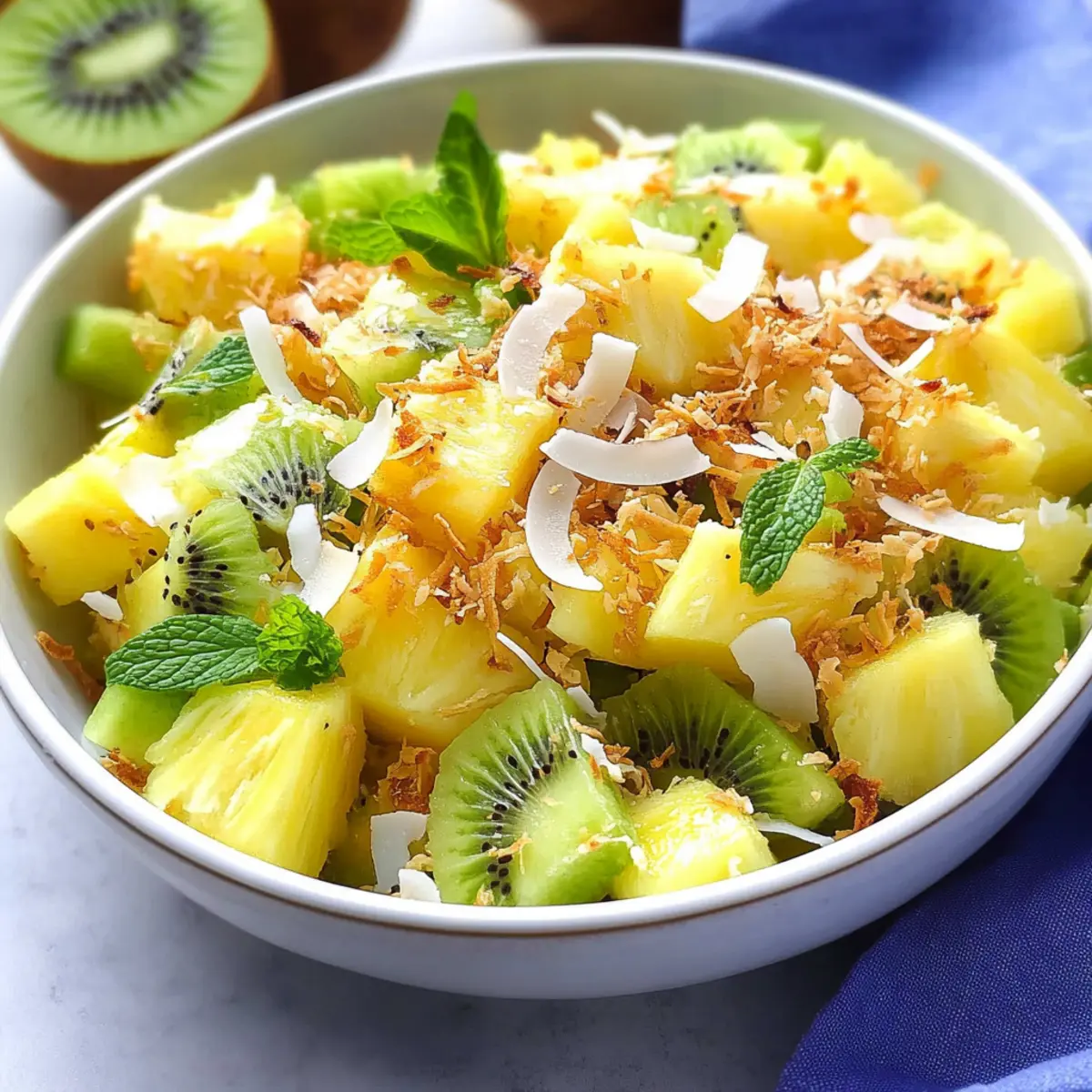 Add Coconut Last: To keep the toasted coconut crunchy, sprinkle it on just before serving your Pineapple Kiwi Salad. This will prevent it from becoming soggy.