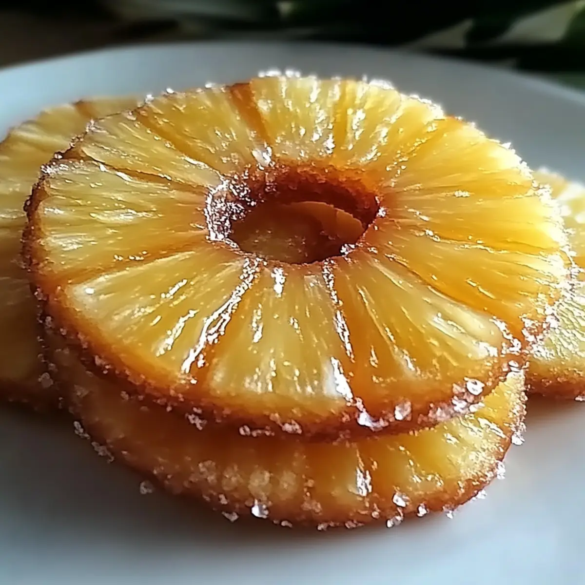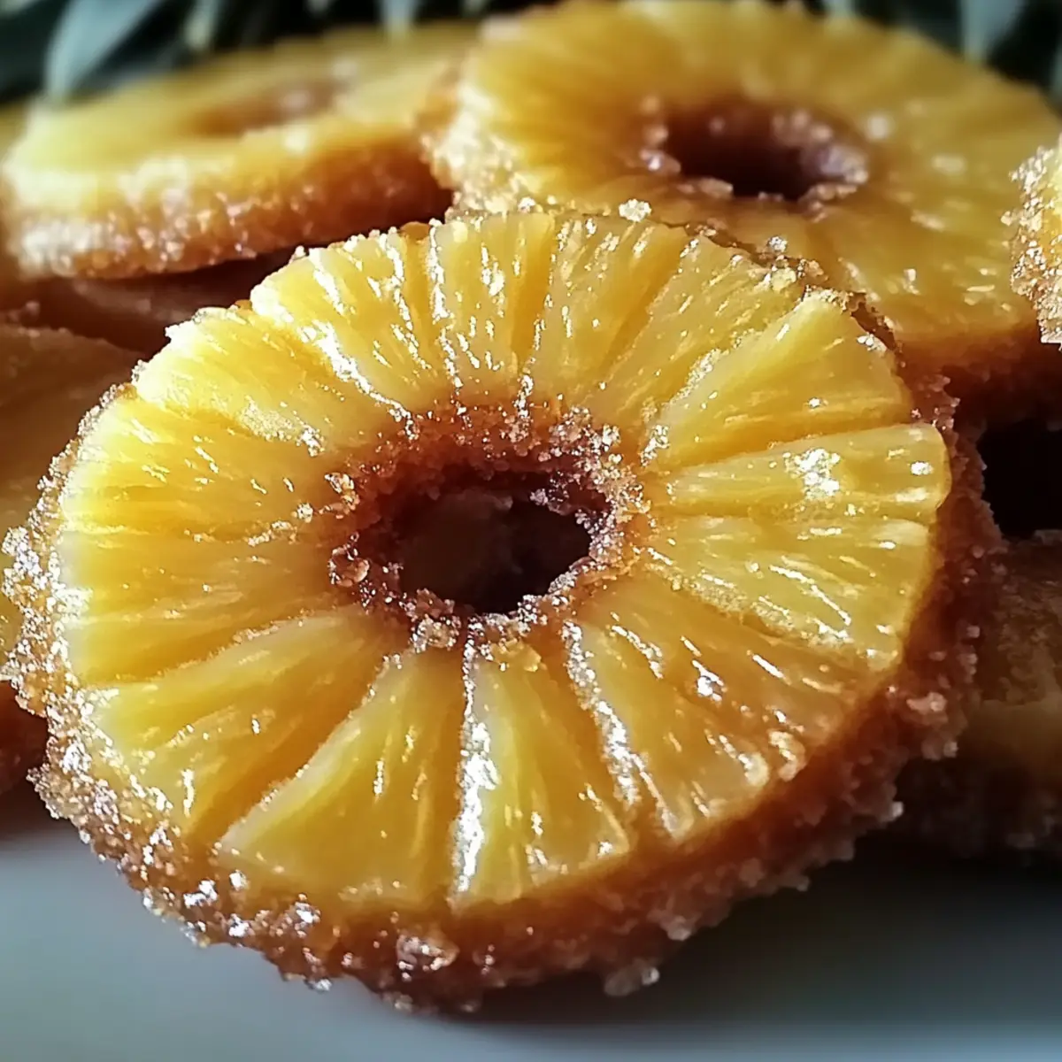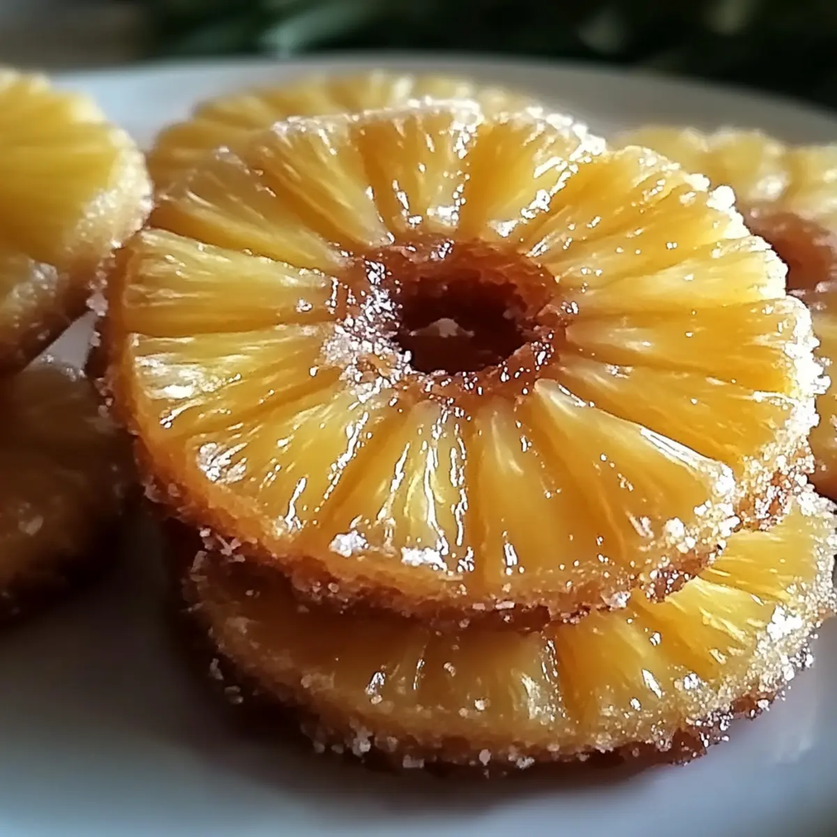 - Press a pineapple ring into the center of each cookie mound and sprinkle with additional sugar.