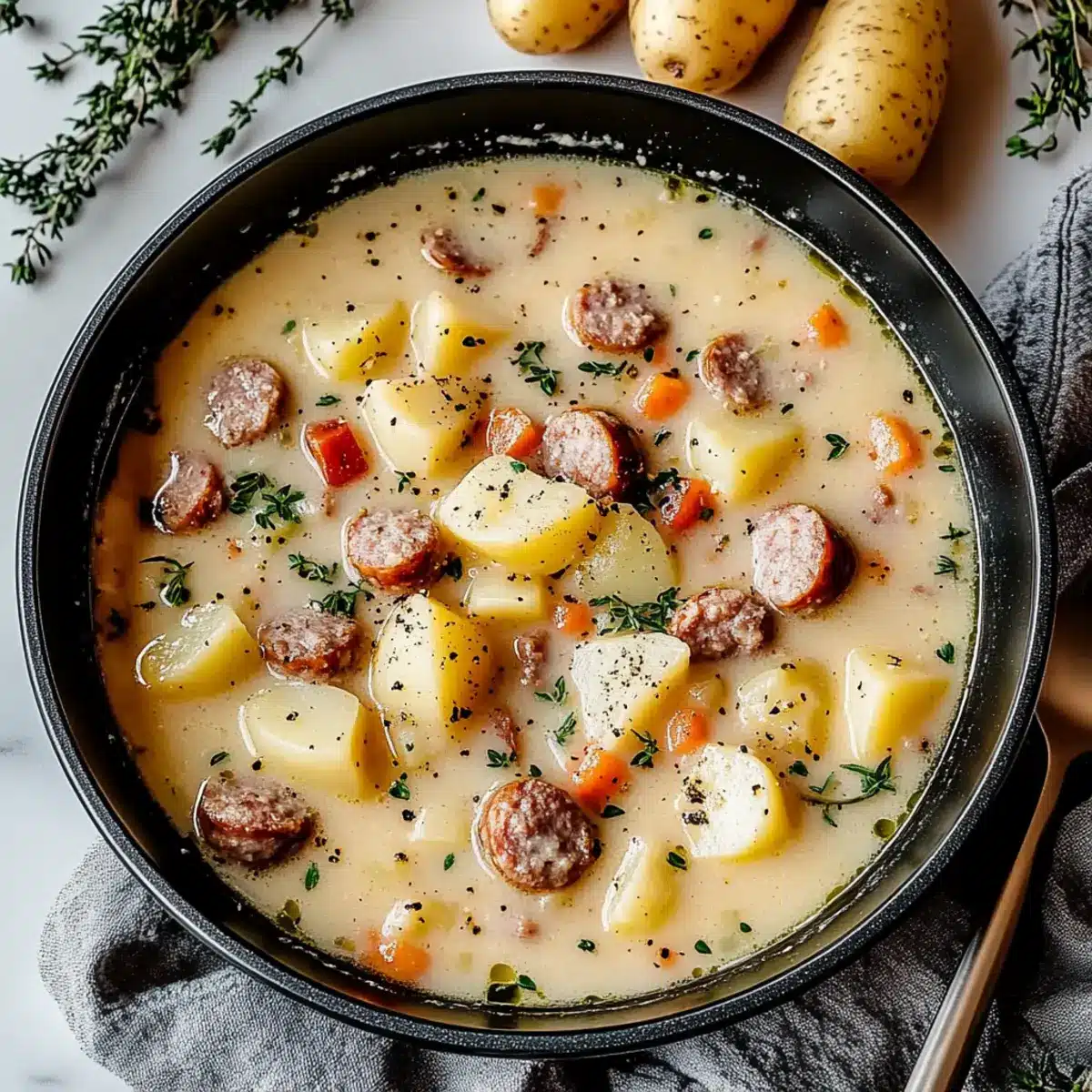 Comforting Richness: This Potato and Sausage Chowder delivers a velvety texture that wraps you in warmth, making it perfect for chilly nights.